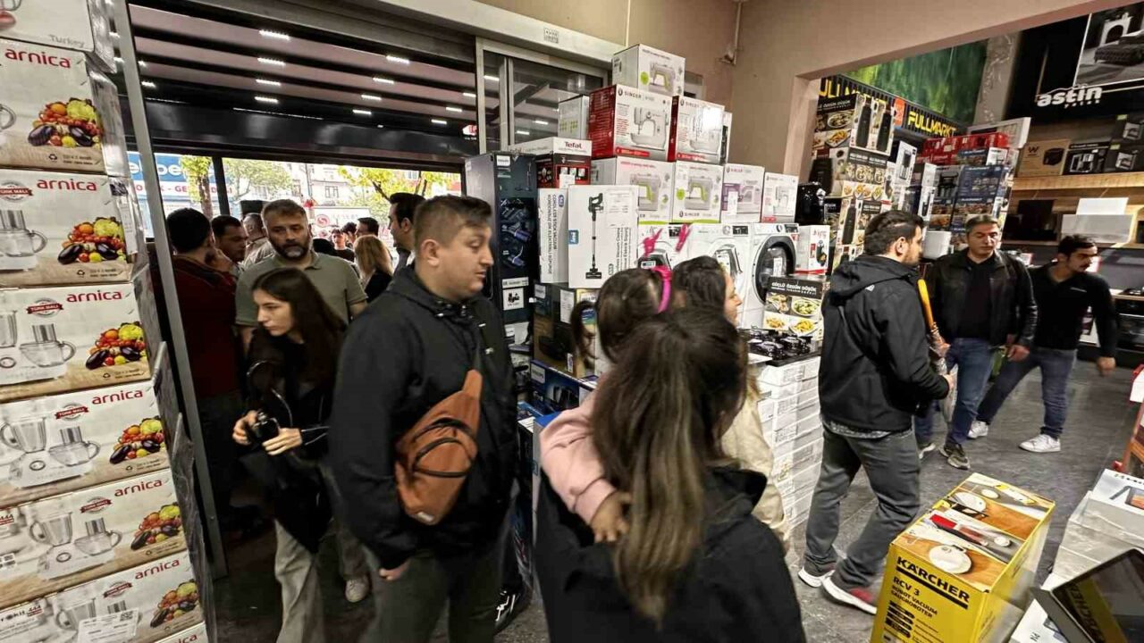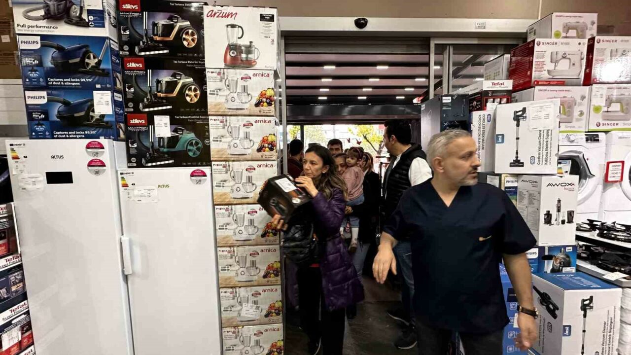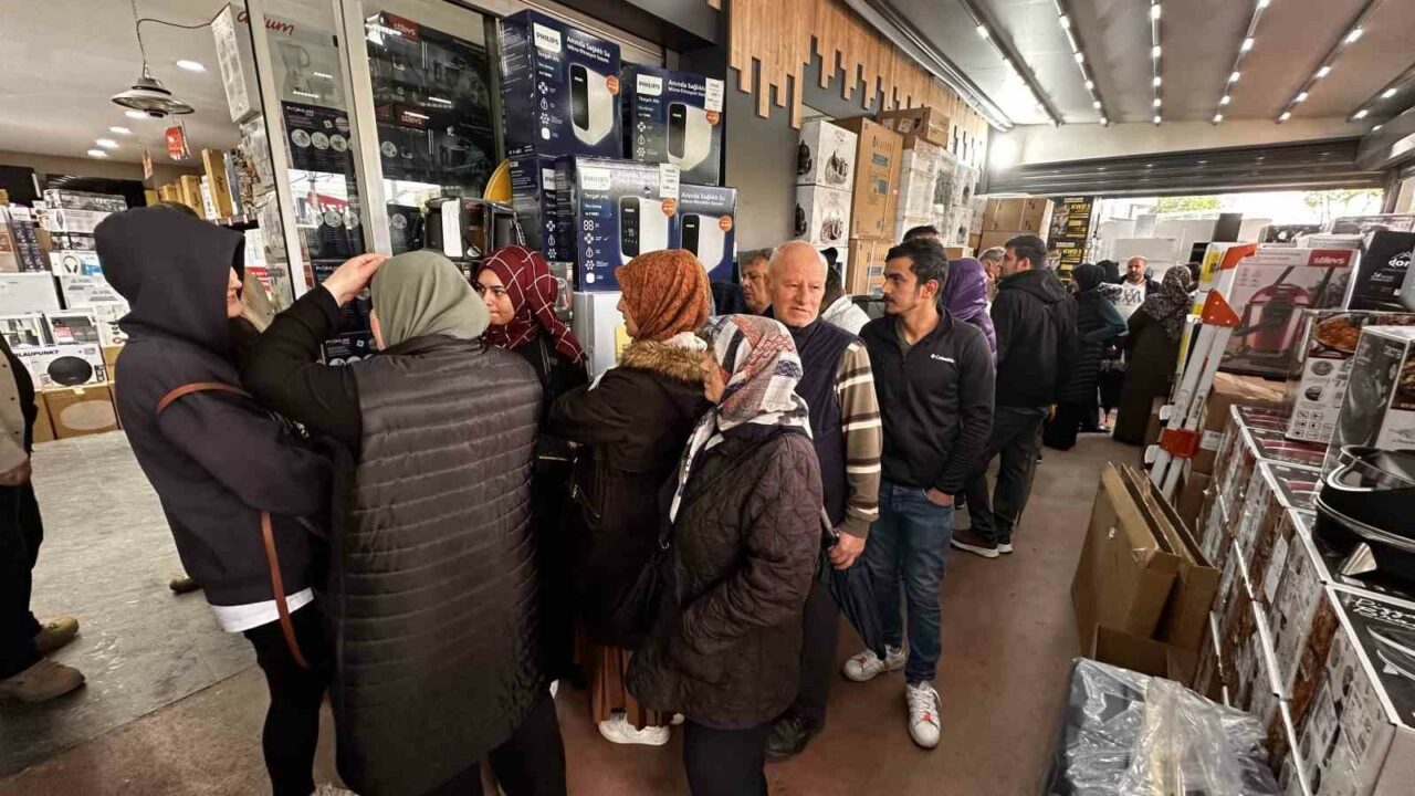 Bursa’da bir zücaciye mağazasının ’Anneler günü’ özel açılışında izdiham yaşandı. Açılışa özel yüzde elli ve üzeri kampanyadan yararlanmak isteyen vatandaşlar mağazada birbirlerini ezdi. Vatandaşlar önlerine geleni alarak kasanın yolunu tuttu.