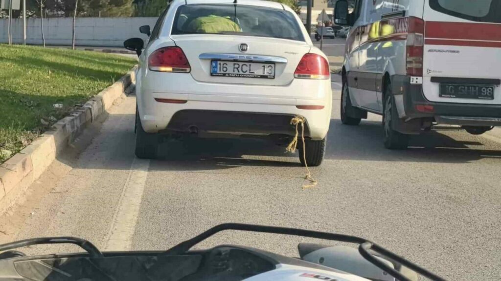 Arabaya bağlanıp iple çekilen motosiklet kaldırıma savruldu: 1 yaralı