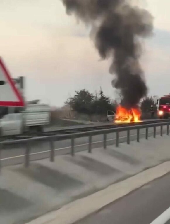 Olay, Bursa-Karacabey Yolu üzerinde meydana geldi. Seyir halindeki bir otomobil sürücüsü aracın motor kısmından çıkan alevler sonrası aracı sağ şeride çekti. Bir anda alev alan araç kısa sürede küle dönerken, ihbar üzerine gelen itfaiye ekiplerince yangın kısa sürede söndürüldü. Olayla ilgili tahkikat başlatıldı.