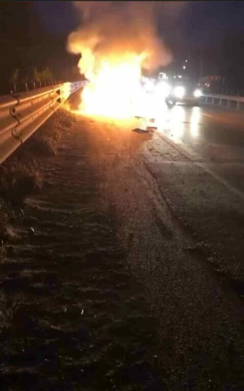 Bursa-Gemlik Yolu, Dürdane Rampası üzerinde bir araç arıza sonucu motor kısmından alev aldı. Araçtan dumanlar çıktığını gören sürücü otomobili hemen emniyet şeridine çekip uzaklaştı. Çevredekiler 112 Ekiplerine ulaşırken, alevler içindeki araç bomba gibi patladı. O anlar kameraya yansırken, itfaiye ekipleri bölgeye gelerek yangına hızla müdahale etti. Şans eseri meydana gelen olayda yaralanma olmazken, araç kullanılamaz hale geldi. Olayla ilgili tahkikat başlatıldı.