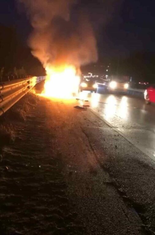Bursa’da seyir halinde arıza yapan otomobil motor kısmından alev aldı. Aracı emniyet şeridine çekip araçtan uzaklaşan sürücü itfaiye haber verdiği sırada otomobil bomba gibi patladı. O anlar kameraya saniye saniye yansıdı.