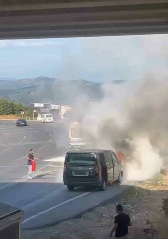 Olay, Bursa’nın Gemlik ilçesi Dürdane rampasında meydana geldi. Edinilen bilgiye göre, dumanlar çıktığını gören minibüs şoförü, aracı kenarı çekti. Aracın motor kısmından yükselen alevler, kısa sürede minibüsü sardı. Yoldan geçen sürücülerin yangın tüpleri ile müdahale ettiği VIP minibüs, kullanılamaz hale geldi.