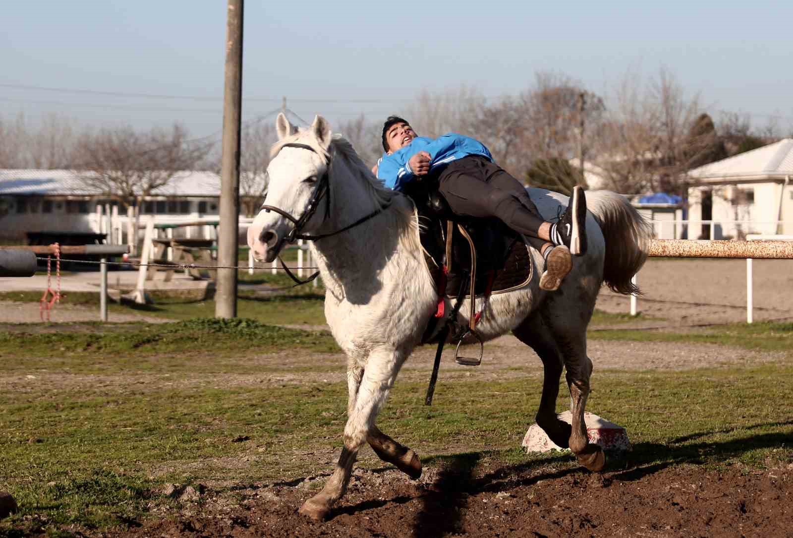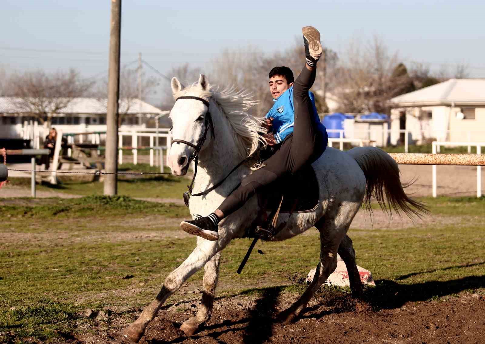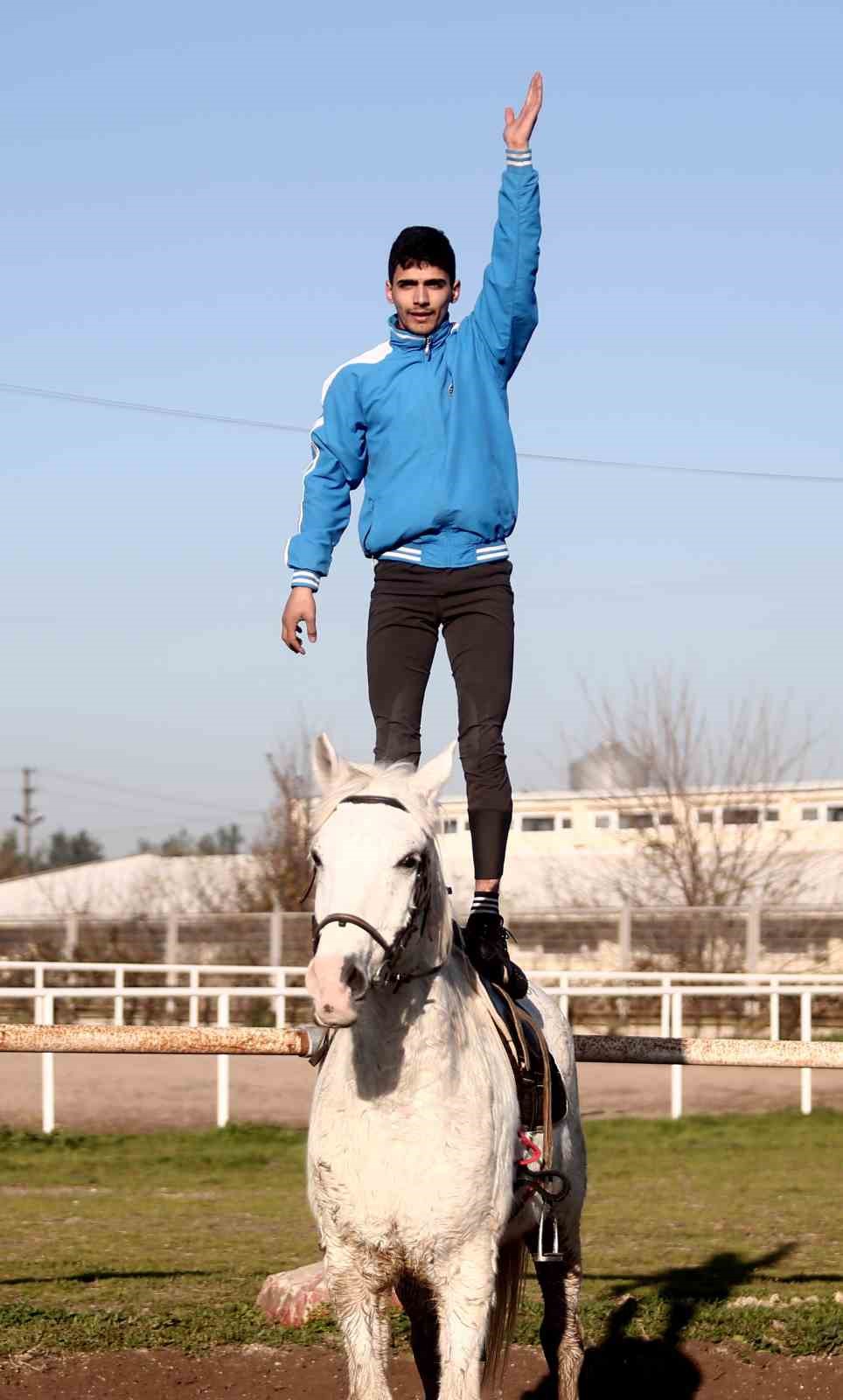 Yabancı jokeylerin akrobasi gösterilerini izleyerek kendi uyguladı