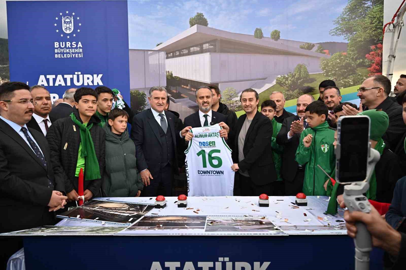 Atatürk Kapalı Spor Salonu projesinden büyük bir heyecan ve mutluluk duyduğunu dile getiren Başkan Aktaş, senelerce şehre hizmet eden, kendisi gibi birçok insanın hayatında hatıraları bulunan salonunda ekonomik ömrünü doldurması sebebiyle yıkıldığını belirtti. Akademik odalarla işbirliği yaparak bir proje yarışması açtıklarını anlatan Başkan Aktaş, “Bursa Mimarlar Odası’na verdikleri destekten dolayı teşekkür ediyorum. Yarışma neticesinde bu proje ortaya çıktı. Toplam 18 bin 720 metrekarelik inşaat alanına sahip alanda 3 bin 100 kişi kapasiteli basketbol sahası ve çeşitli birimler bulunuyor. Yeni Atatürk Kapalı Spor Salonu’nu önümüzdeki dönemde aynı yerinde şehrimizin hizmetine sunmuş olacağız. Bakanımıza bu projeye ve diğer projelere verdiği desteklerden dolayı teşekkür ediyorum. Bursa’mıza, gençlere, çocuklara ve kulüplere hayırlı uğurlu olsun” dedi.