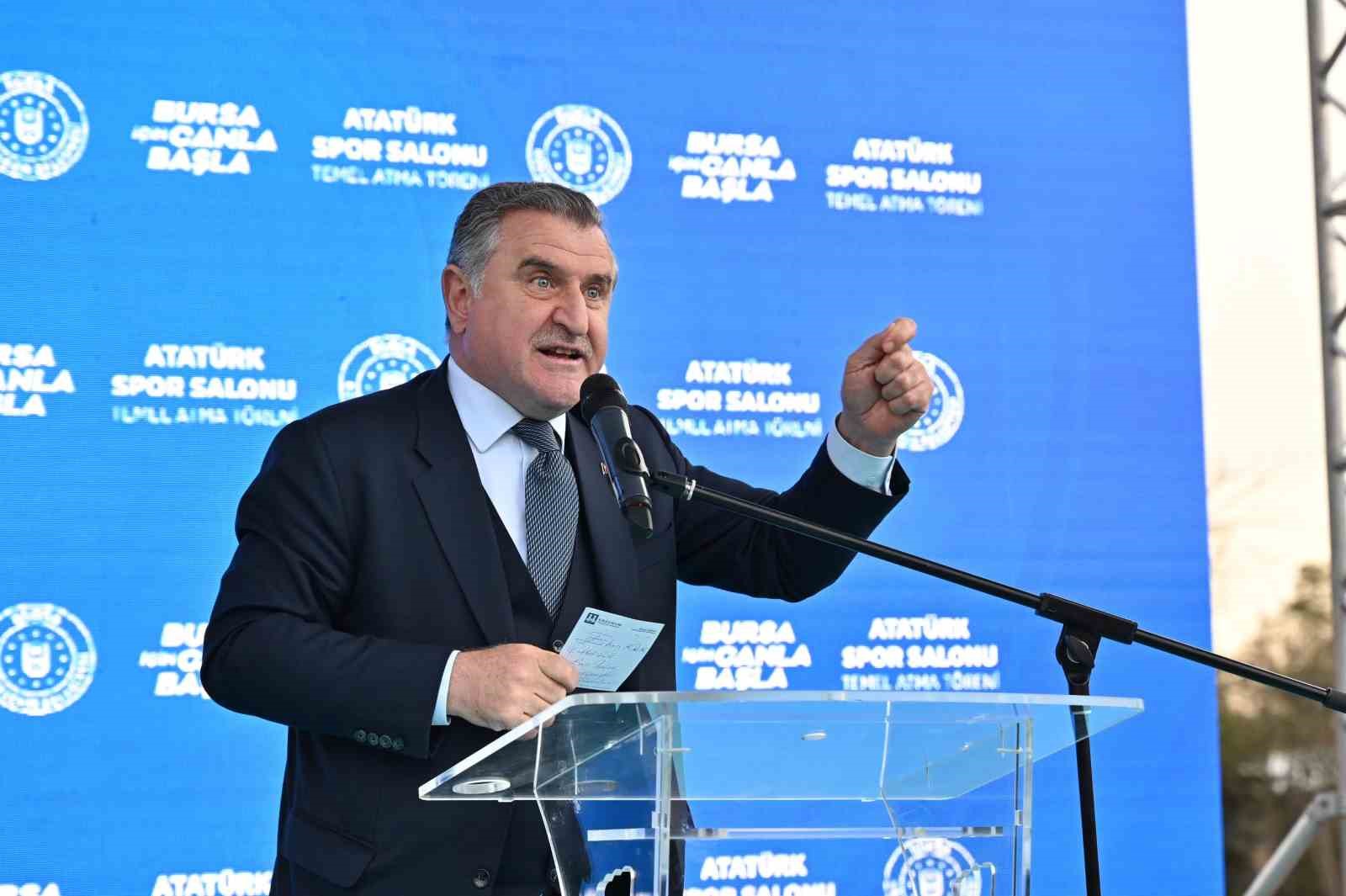 Gençlik ve Spor Bakanı Osman Aşkın Bak, Büyükşehir Belediye Başkanı Alinur Aktaş’ın Bursa’da müthiş spor yatırımları yaptığını dile getirdi. Bunlardan bir tanesinin de Atatürk Kapalı Spor Salonu olduğunu söyleyen Bakan Bak, “Benim de burada anılarım var. Bursaspor’uyla, Sönmez Filamenti’yle, Tofaş’ıyla, Oyak Renault’uyla ve şimdi de efsane Poyrazın Kızları’yla Bursa bir spor şehridir. Şehrin merkezine böylesi güzel bir spor salonu da yakışırdı. Başkanımıza teşekkür ediyoruz. Tüm dedikodulara rağmen yılmadan çalıştı. Biz iş yaparız. Hizmet yaparız. Eser üretiriz. Bursa’da Büyükşehir Belediyesi ve ilçe belediyeleriyle beraber yaptığımız eserler ortada. İki hafta önce de Bursa’da yeni eserleri hizmete açtık. Tüm bunları gençlerimiz için yapıyoruz. Alinur Aktaş da gençler için durmadan ve yorulmadan çalışıyor” dedi.