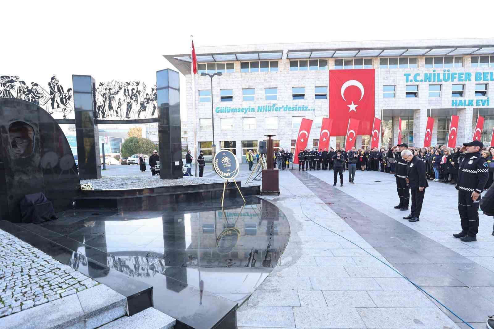 Nilüfer Belediyesi Halk Evi önündeki Nilüfer Cumhuriyet Meydanı’nda ve Alaaddinbey Hizmet Binası önünde düzenlenen törenlerde bütün çalışanlar katıldı. Cumhuriyet Meydanı’ndaki anma törenine Nilüfer Belediye Başkanı Turgay Erdem ile eşi Zeynep Terzioğlu Erdem, CHP Bursa Milletvekili ve Parti Meclisi Üyesi Orhan Sarıbal, CHP Bursa Milletvekili Nurhayat Altaca Kayışoğlu, CHP Nilüfer İlçe Başkanı Özgür Şahin, İYİ Parti Bursa İl Başkanı Dr. Mehmet Hasanoğlu, Nilüfer Belediyesi çalışanları ile çok sayıda vatandaş katıldı. Nilüfer Belediye Başkanı Turgay Erdem’in Atatürk anıtına çelenk sunmasıyla başlayan törende saatler 09.05’i gösterdiğinde hayat durdu, meydanı dolduranlar iki dakikalık saygı duruşunda bulundu ardından da İstiklal Marşı okundu.