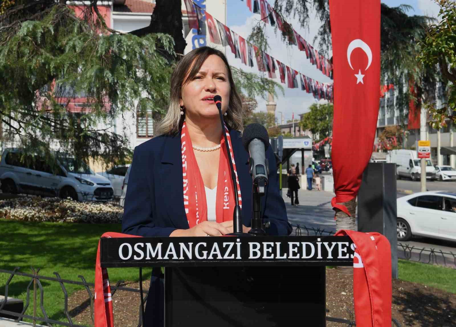 Çelenk sunma töreninde konuşan Osmangazi Kent Konseyi Başkanı Fatma Çil Yılmaz, “Bugün burada, Gazi Mustafa Kemal Atatürk’ün Cumhurbaşkanı sıfatıyla Bursa’ya gelişinin 100’üncü yıl dönümünü anmak ve kutlamak için bir araya geldik. Biliyorsunuz ki Gazi Mustafa Kemal Atatürk, Cumhurbaşkanı sıfatıyla 31 Ağustos’ta Bursa’ya geldiğinde 11 gün burada kaldı. Bursa’nın kurtuluşunun ikinci yıl dönümü etkinliklerini bekledi ve bu etkinlikler coşkuyla gerçekleştirildi. Bizler de Osmangazi Belediyesi ve Osmangazi Kent Konseyi olarak, Mustafa Kemal Paşa’nın Cumhurbaşkanı sıfatıyla Bursa’ya gelişinin 100’üncü yılı dolayısıyla bu töreni gerçekleştirdik. Başta Gazi Mustafa Kemal Atatürk ve tüm şehitlerimizi rahmet, sevgi ve minnetle anıyoruz” dedi.