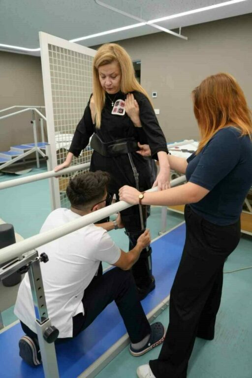 Bennur Karaburun Ateş’in tedavisi ile ilgilenen Doruk Nilüfer Hastanesi Fizik Tedavi ve Rehabilitasyon Uzmanı Dr. Elif Aksakallı Omurilik pili sayesinde ileti gitmeyen kaslara iletinin gittiğini belirterek, tedavi sayesinde gövde ve bacak kontrolünü daha kolay sağladıklarını söyledi. Dr. Aksakallı, “Uzun yürüme cihazı ile hastamızı ayağa kaldırdık. Ağırlık ve denge çalışmalarını yapıyoruz. Robotik rehabilitasyon ile de yeni sinir köprülerinin oluşması için bir desteğimiz oluyor. Havuz içi rehabilitasyon süreci var tabi bu süreçler hiç te kolay değil. Hastanın azmi çalışması hepsi bize bu süreçte bize yardımcı oluyor. Bennur hanımın yaralanması çok üst düzey bir yaralanma bu seviyede çoğu hasta zaten tekerlekli sandalyede devam ediyor ama biz güzel bir seviyedeyiz. Omurilik pili sayesinde daha aşağıdaki kaslara ileti gittiği için biz gövde bacak kontrolünü sağlayabiliyoruz. Umarım daha da iyi sonuçlar alırız” şeklinde konuştu.