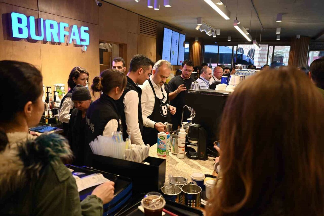 TBMM Sanayi, Ticaret, Enerji, Tabii Kaynaklar, Bilgi ve Teknoloji Komisyonu Başkanı ve Bursa Milletvekili Mustafa Varank, Bursa Büyükşehir Belediye Başkanı Alinur Aktaş ve AK Parti İl Başkanı Davut Gürkan ile birlikte Tarihi Çarşıbaşı Meydanı’ndaki Burfaş Kafe’de barista önlüklerini giyerek tezgahın başına geçti.