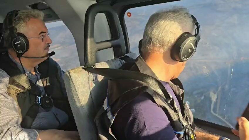 Ulaştırma ve Altyapı Bakanı Abdulkadir Uraloğlu, helikopter ile yangın bölgesinde incelemede bulundu.