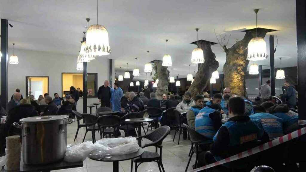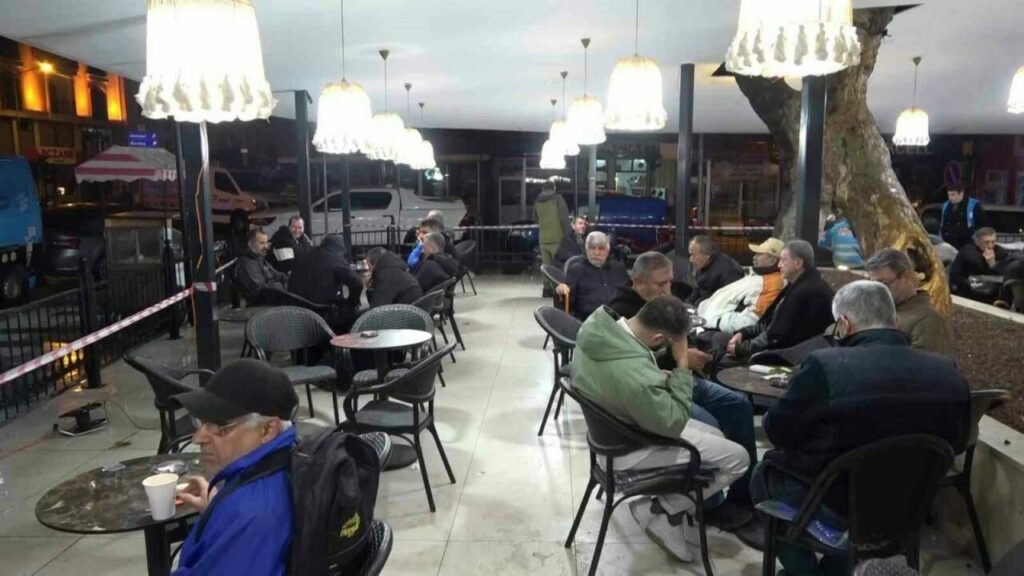 Bölgede şiddetli yağmur yağışı etkisini sürdürürken, vatandaşlar ve görevliler çevredeki kafelerde geçici ortak alanlar oluşturarak barınma ve ısınma ihtiyaçlarını karşıladı.