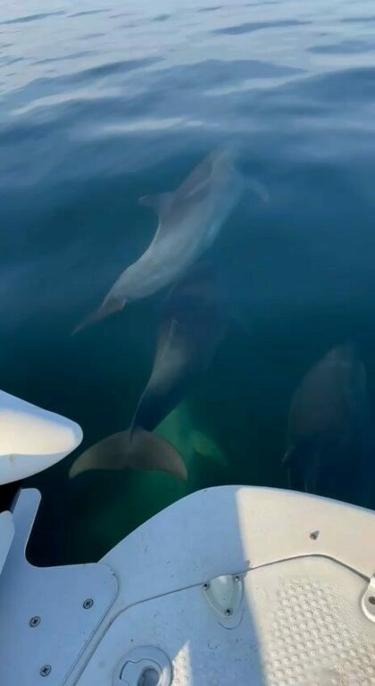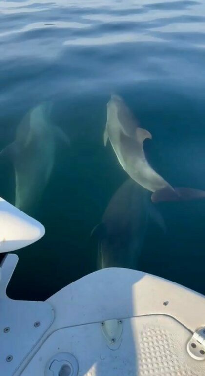 Ara ara tekneden uzaklaşan yunusların, bir süre sonra yeniden teknenin yanına gelerek balıkçıya eşlik etmesi dikkat çekti. Kendisiyle yüzen yunusların verdiği tebessümle birlikte balık tutmayı unutan balıkçının kayda aldığı görüntüler ise kısa sürede binlerce izleme aldı. Balıkçının, yunusun kendisine baktığını iddia etmesi de dikkat çekti.