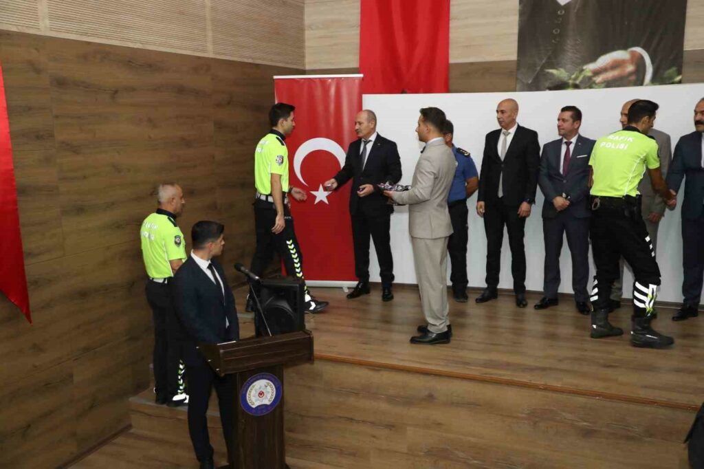 Bursa İl Emniyet Müdürlüğü konferans salonunda düzenlenen törende, farklı birimlerinde görev alan başarılı 55 personele ödülleri verildi. Bursa İl Emniyet Müdürü Dr. Sabit Akın Zaimoğlu ve il emniyet müdür yardımcıları tarafından göstermiş oldukları özverili çalışmaları sebebiyle başarılı olan personele ödüllerini takdim edildi.