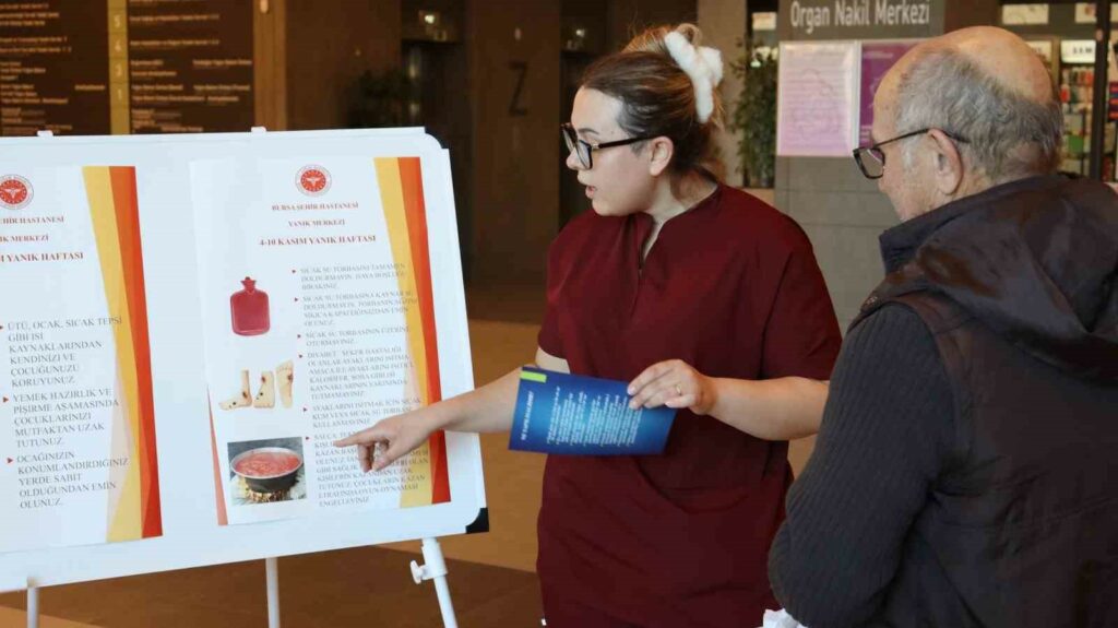 Bursa Şehir Hastanesi, Dünya Yanık Haftası kapsamında vatandaşları yanık konusunda bilgilendirmek amacıyla stant kurdu. Hastane içerisinde kurulan stantta bilgilendirici broşürler dağıtıldı. Vatandaşlardan gelen soruları yanıtlayan Erişkin Yanık Sorumlusu Op. Dr. Selma Beyeç, basit tedbirlerle çok kapsamlı bir tedavi yöntemi olan yanığın oluşmasının engellenebileceğine dikkati çekti.
