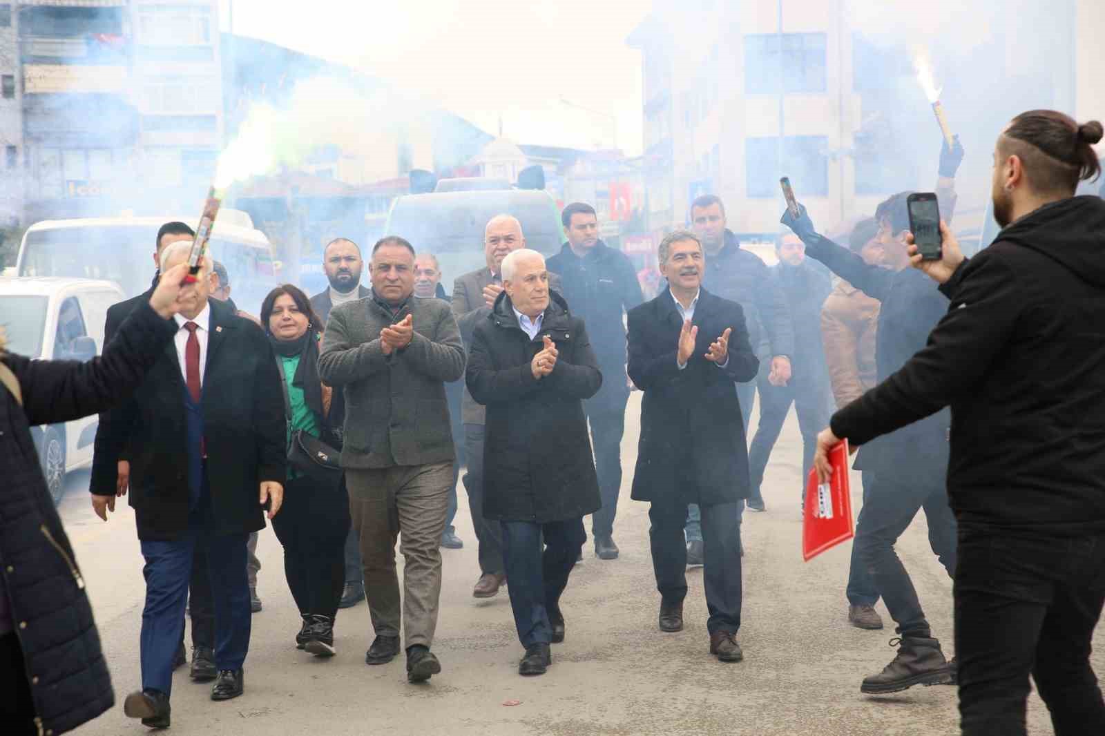 Bozbey’e, CHP İl Başkanı Nihat Yeşiltaş, Gemlik Belediye Başkanı Mehmet Uğur Sertaslan, Gemlik Belediye Başkan Adayı Şükrü Deviren de eşlik etti.