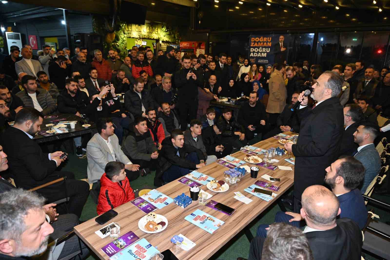 Bursa Büyükşehir Belediye Başkanı Alinur Aktaş, güne Kestel ilçesinde başladı. Merkez Camii’ndeki sabah namazının ardından vatandaşlara çorba dağıtan Başkan Alinur Aktaş, daha sonra ilçedeki sivil toplum kuruluşlarının temsilcileri, meslek odaları ve hemşeri derneklerinin temsilcileriyle bir araya geldi. Darül Şifa Yaşlı ve Engelli Bakım Merkezi’ni ziyaret eden Başkan Aktaş, hizmet alan vatandaşlarla sohbet edip tedavi süreçleri hakkında bilgi aldı. Ziyaretin sonunda Bakım Merkezi kurucu Müdürü Nazmi Kıyatsıl tarafından Başkan Aktaş’a mozaik taşlarıyla yapılmış Türk Bayrağı tablosu hediye edildi. Ardından fabrika ve esnaf ziyaretlerinde bulunan Başkan Aktaş, Kestel teşkilatıyla da biraraya gelerek fikir alışverişinde bulundu. Günün sonunda ‘Kestel Gençlik Buluşması’ kapsamında gençlerle buluşan Başkan Aktaş, Bursa’ya dair projelerini gençlerle paylaştı.