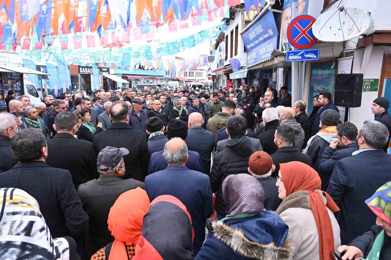 Dağ bölgesinin güzel ve vatanperver insanlarıyla buluşmaktan büyük mutluluk duyduğunu söyleyen Başkan Alinur Aktaş, Orhaneli ve Büyükorhan başta olmak üzere dağ ilçelerine her zaman en iyi hizmetleri yapmanın hesabı içerisinde olduklarını belirtti. Genç nüfusun yoğun olduğu Orhaneli ve Büyükorhan’a gençlik merkezi kazandırmak istediklerini ifade eden Başkan Aktaş, 31 Mart akşamına kadar kapı kapı gezerek Bursa’ya dair taşıdıkları heyecanı anlatacaklarını söyledi. ‘Her şey bir hayalle başlar’ diyen Başkan Alinur Aktaş, yaptıkları hizmetleri önümüzdeki dönemde tüm hızıyla sürdüreceklerini anlattı. Partideki değerlendirmeler neticesinde bazı belediye başkanlarının ‘başım üstüne’ dediğini, bazılarının ise trenden indiğini belirten Başkan Aktaş, “Vefa duyulması gereken birisi varsa, o da bize bu cesareti, iradeyi veren Recep Tayyip Erdoğan’dır. Aramızdan ayrılanlar hakkında asla kötü konuşmayız. Biz yol arkadaşlığı yapıyoruz. Özellikle Büyükorhan şampiyonluklara alışmış bir şehir. Yüzde 70-80’leri görmüş bir ilçede daha yüksek rakamları görmek istiyoruz. Orhaneli’de, Büyükorhan’da coşkuyu, heyecanı gördük. Kalan süreçte projelerimizi, hedeflerimizi anlatmaya devam edeceğiz. Hedefimize odaklanarak 31 Mart akşamı coşkuyu hep beraber yaşayacağız. Biz siyasetten birilerinin hayatına dokunmayı, hizmet etmeyi anlıyoruz” dedi.