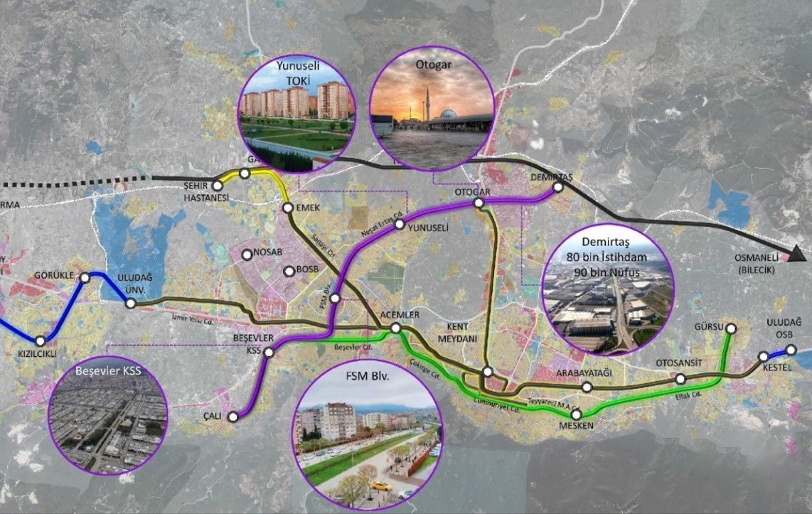 Bursa Büyükşehir Belediye Başkanı Alinur Aktaş, toplam 57 kilometrelik raylı sistem ağına yeni dönemde 32 kilometre daha ilave ederek 89 kilometreye çıkartacaklarını belirterek, “Üniversite-Görükle-Kurtuluş Hattı ile üniversiteden Görükle merkeze raylı sistemle erişimi sağlıyoruz. Kuzey güney yönünde olma özelliğiyle ilk olan Çalı-Demirtaş metro hattına da önümüzdeki dönem başlıyoruz” dedi.