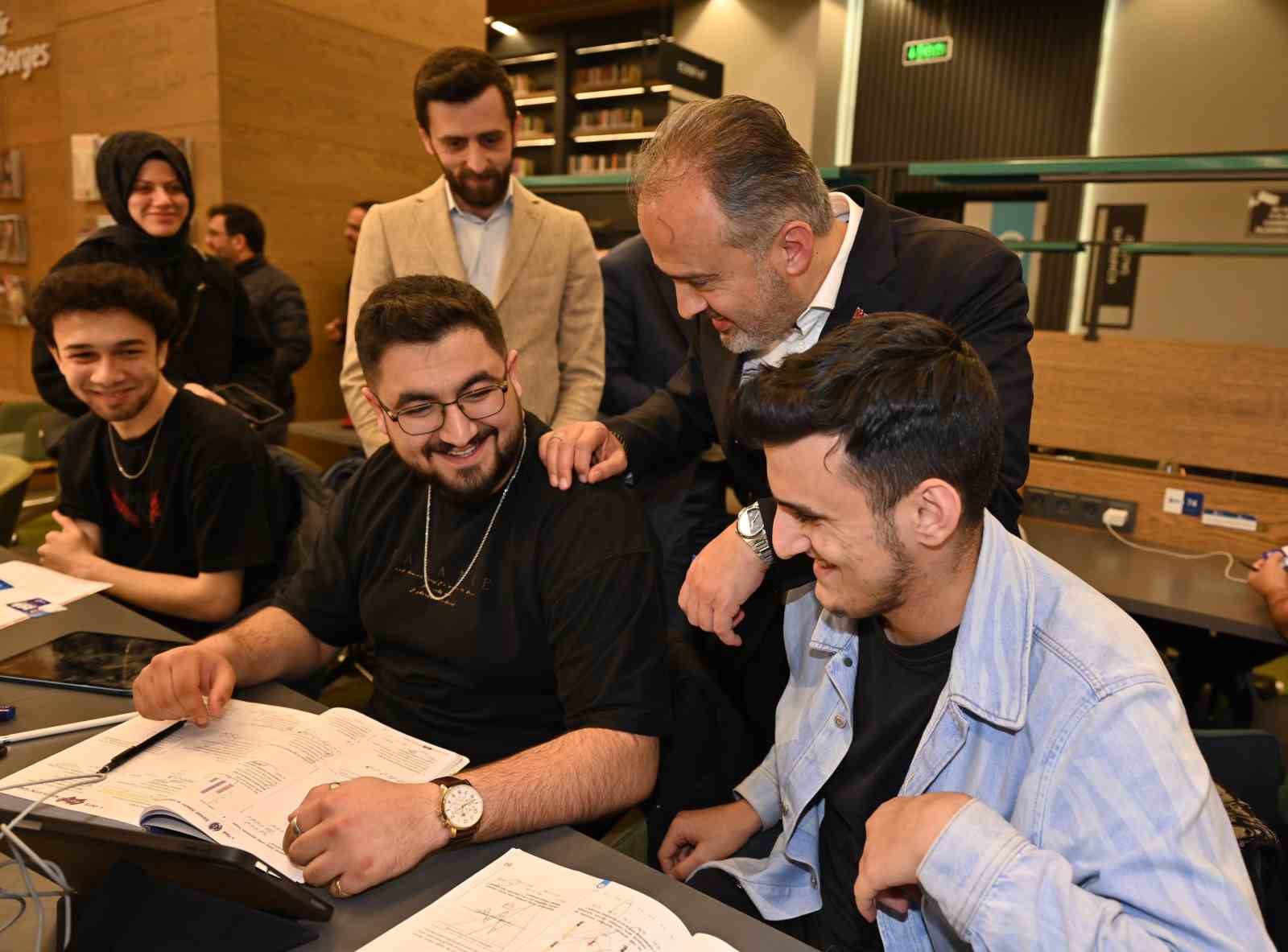 Bursa Büyükşehir Belediye Başkanı Alinur Aktaş, Mümine Şeremet Uyumayan Kütüphanesi’ndeki sahur programında gençlerle buluştu.