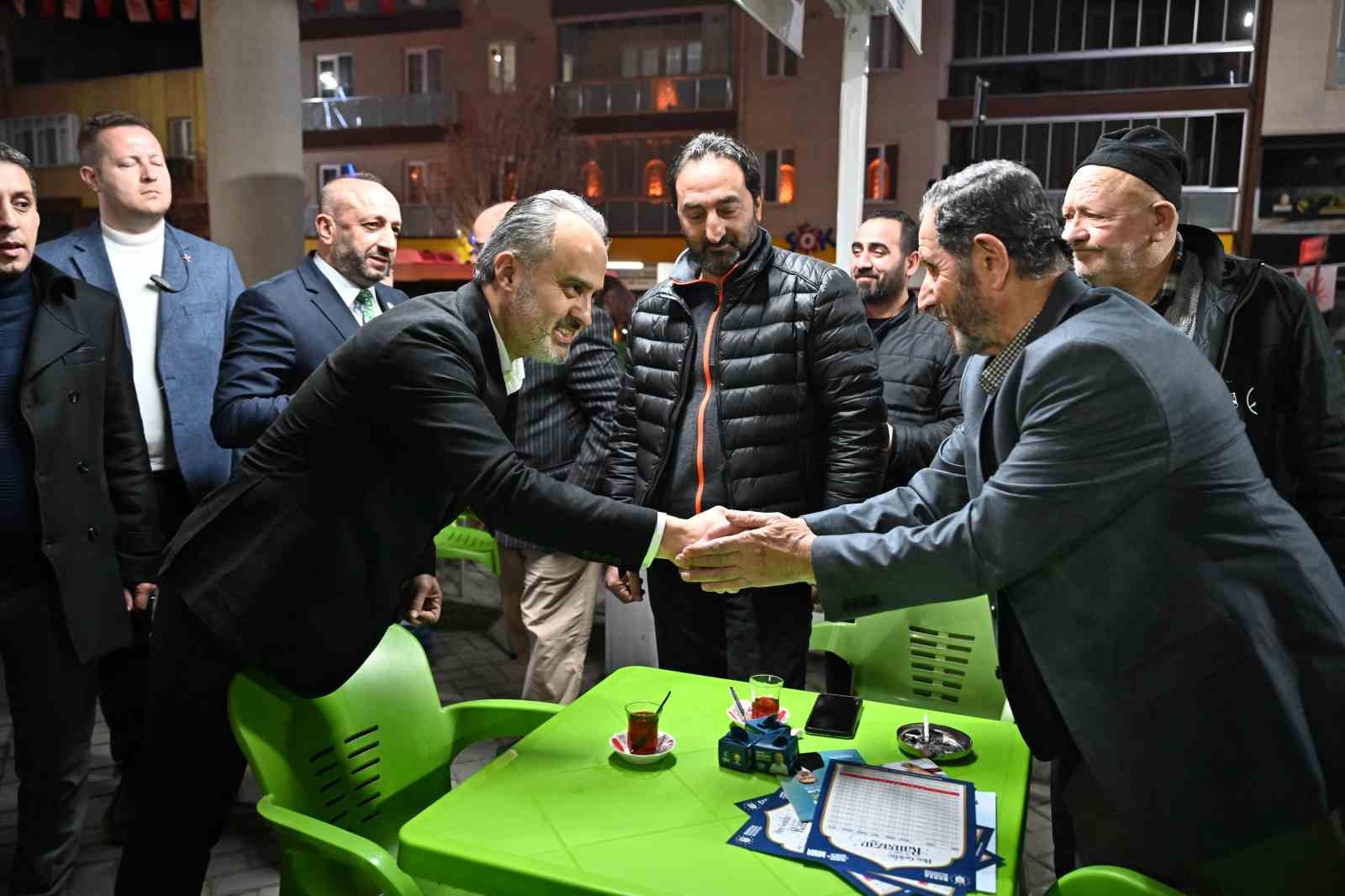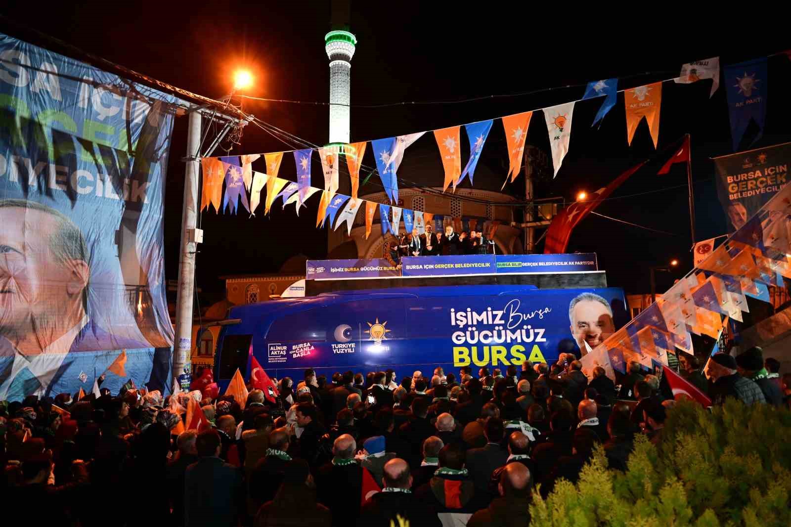Başkan Aktaş ve beraberindekiler daha sonra Orhaniye Mahallesi’ne geçerek nokta mitingi düzenledi. Vatandaşlar tarafından meşalelerle karşılanan Bursa Milletvekili Mustafa Varank, Başkan Alinur Aktaş, başkan adayı Ferhat Erol ve beraberindekiler, yeni döneme dair heyecanlarını ve yapılacak hizmetleri anlattı.