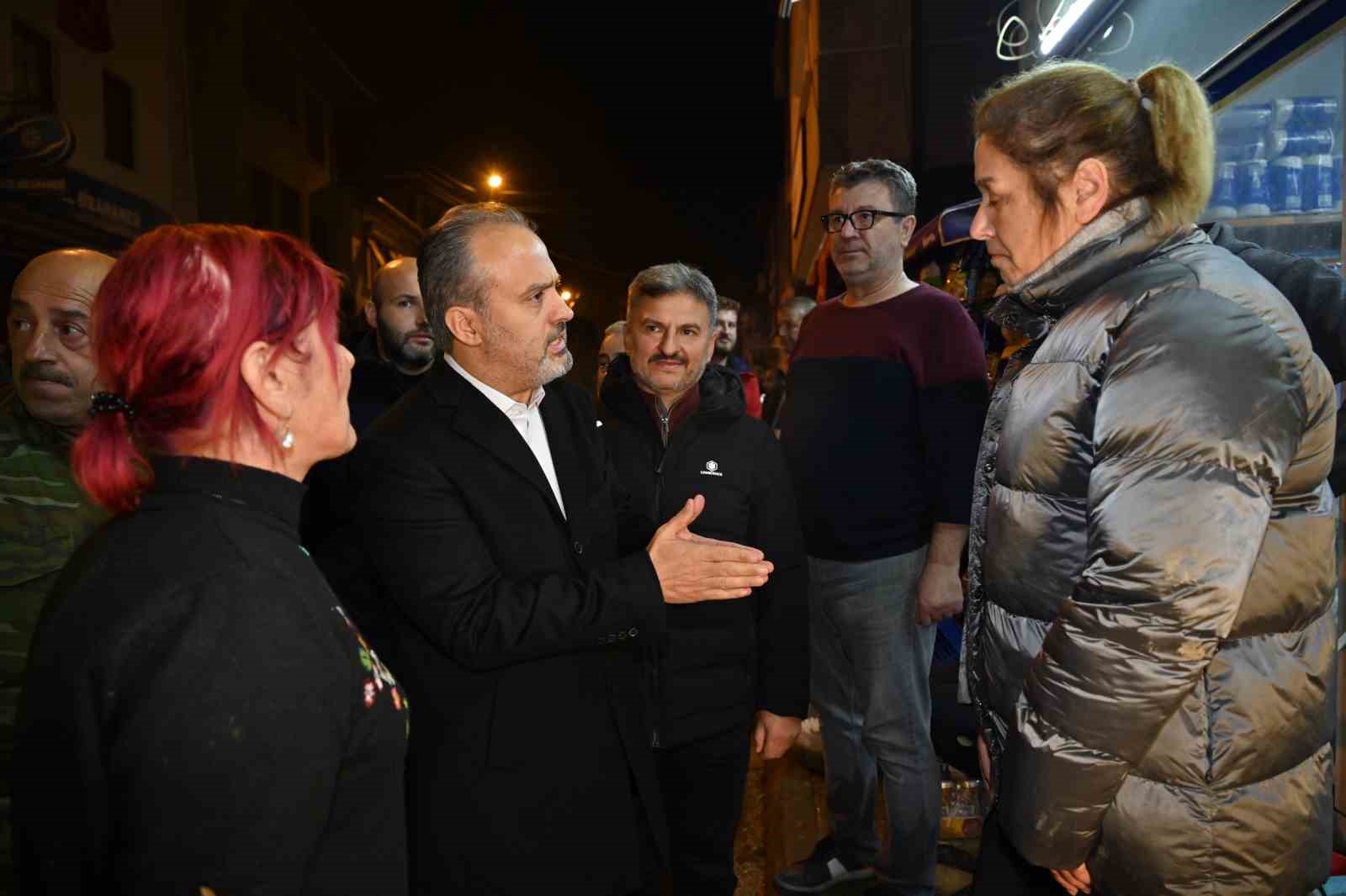 Bursa’nın Mudanya ilçesi Tirilye Mahallesi’nde şiddetli yağış sonrası oluşan selin yaralarını sarma çalışmaları devam ederken, Bursa Büyükşehir Belediye Başkanı Alinur Aktaş ise gece Ankara dönüşü, çalışmaları yerinde inceledi. Can kaybı olmamasının en büyük teselli olduğunu belirten Başkan Aktaş, “Maddi hasarlar var. İnşallah yaraları el birliğiyle saracağız” dedi.