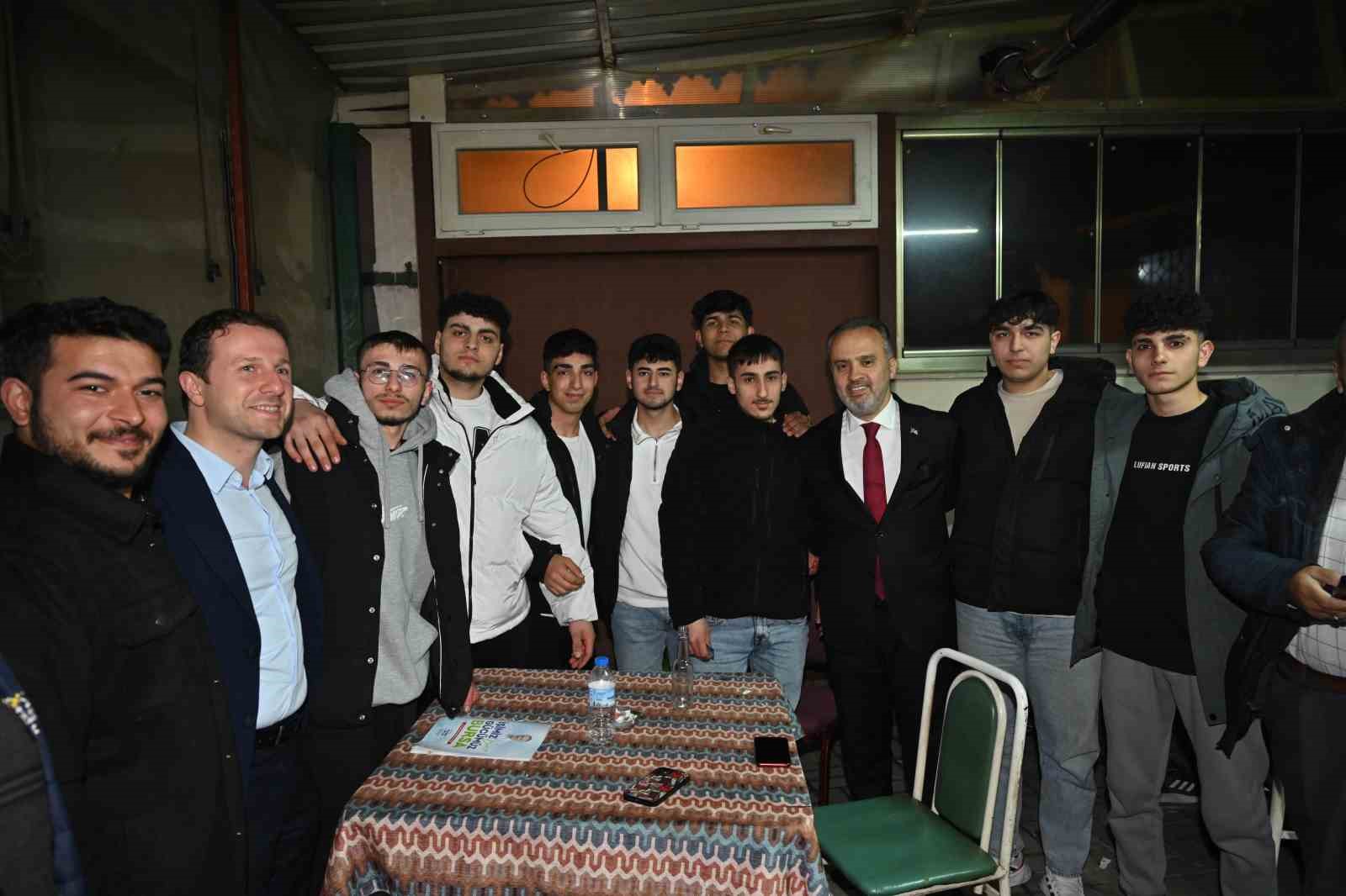 Teravih namazını Vakıfköy Cami’nde kılan Başkan Alinur Aktaş, namaz çıkışı Vakıf Spor Kulübü sporcuları tarafından meşaleler eşliğinde coşkuyla karşılandı. Bursa Milletvekili Ahmet Kılıç, AK Parti İl Başkanı Davut Gürkan, AK Parti İl Gençlik Kolları Başkanı Ömer Faruk Temiztürk, Yıldırım Belediye Başkanı Oktay Yılmaz, AK Parti İlçe Başkanı İrfan Akkaya ve meclis üyelerinin de yer aldığı buluşmada, Başkan Aktaş cami bahçesinde toplanan vatandaşlarla hasbihal ederek taleplerini not aldı.
