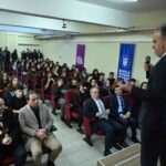 Hem öğrencilik hem de belediyecilik tecrübelerinden örneklerle gençlere tavsiyelerde bulunan Başkan Aktaş, “Gelecek planları yapmaya başladığınız zamanlarda ve kafa karışıklığınızın da çok olduğu bir dönemdesiniz. Kendinizi tanıyarak ve geleceği iyi okuyarak kendinize bir konumlandırma yapmanız önemli. Eğitim adına eskiye göre çok daha fazla imkana sahipsiniz. Ben başaramıyorum demeyin, bir şeylere odaklanmanız gerekiyor. Kendinizi kandırmayın asla ve ne istediğinize odaklanın. Allah herkese bir yetenek vermiştir, sizin de kendinizi tanımanız ve neler istediğinizi, hangi mesleği yapmak istediğinizi keşfetmeniz gerekiyor. Bu buluşmamızı bir fırsat bilin, kendinize inanın ve güvenin, kararmış bir sayfa varsa bugün yırtın atın o sayfayı ve kendinize ‘bugün yeniden başlıyorum’ deyin. Bilmem kaç tane üniversite veya kaç bin öğrenci olursa olsun sizin biraz heyecanınız ve koşmaya gayretiniz varsa başarılı olmamanız için hiçbir gerekçe yok. Ufkunuzu, vizyonunuzu bu manada geniş tutun. İngilizce öğrenmeyi çoğu genç öteliyor veya önemsemiyor. Bu büyük bir hata, ne yapın edin bir değil, birkaç yabancı dil öğrenin. Tecrübe çok pahalı bir şey esasında, çünkü onun için defalarca denenmiş ve bedeller ödenmiştir. Kendinizi tanımanıza yardımı dokunsun ve fotoğrafa biraz daha geniş çerçeveden bakmanız adına naçizane hayırlı, güzel kararlar verebilmenize vesile oluruz” diye konuştu. Bursa Büyükşehir Belediyesi’nin gençlik çalışmaları ve diğer çalışmaları hakkında bilgi veren Başkan Aktaş, gençlik konusunun kendileri için çok önemli olduğunu dile getirdi.