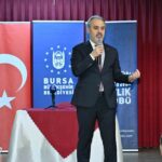 Regaip Kandili’nde gençlerle bir arada olmayı tercih ettiği için Büyükşehir Belediye Başkanı Alinur Aktaş’a teşekkür eden Bursa İl Milli Eğitim Müdürü Dr. Ahmet Alireisoğlu, “Bu özel günde böyle güzel bir etkinlikte bir arada olmaktan dolayı mutluyum, kandiliniz mübarek olsun. İnşallah daha güzel, daha nitelikli, daha ümit dolu insanlar olarak yarına her beraber uyanmış ve bu ülkede inanarak yürüyen insanlardan olmuş oluruz. Bu vesileyle Başkanımıza da gençlerimizi düşündüğü için, bu özel günde gençlerle olmayı tercih ettiği için sizler adına da teşekkür ediyorum. Biz öğretmenler, çocukların biyografi okumalarını isteriz. Biyografi okumak onların gelecekte ne yapacakları ile ilgili potansiyellerini arttırır. Başarılı olmuş, şehir yöneticisi anlamında da üst noktada olan bir biyografi ile karşılaşmanız, onu dinlemeniz ve onunla yapacağınız paylaşım hepsinden önemlidir. 12 yıl boyunca emek verdiğimiz siz kıymetli öğrencilerimiz, 12 yılın ardından başarılı olmak isteyen bireyler olarak hayata karışıyorsunuz. Çekinmeden merak ettiklerinizi de Başkanımıza sormayı unutmayın. Bu organizasyonda emeği geçenlere teşekkür ediyorum” dedi.