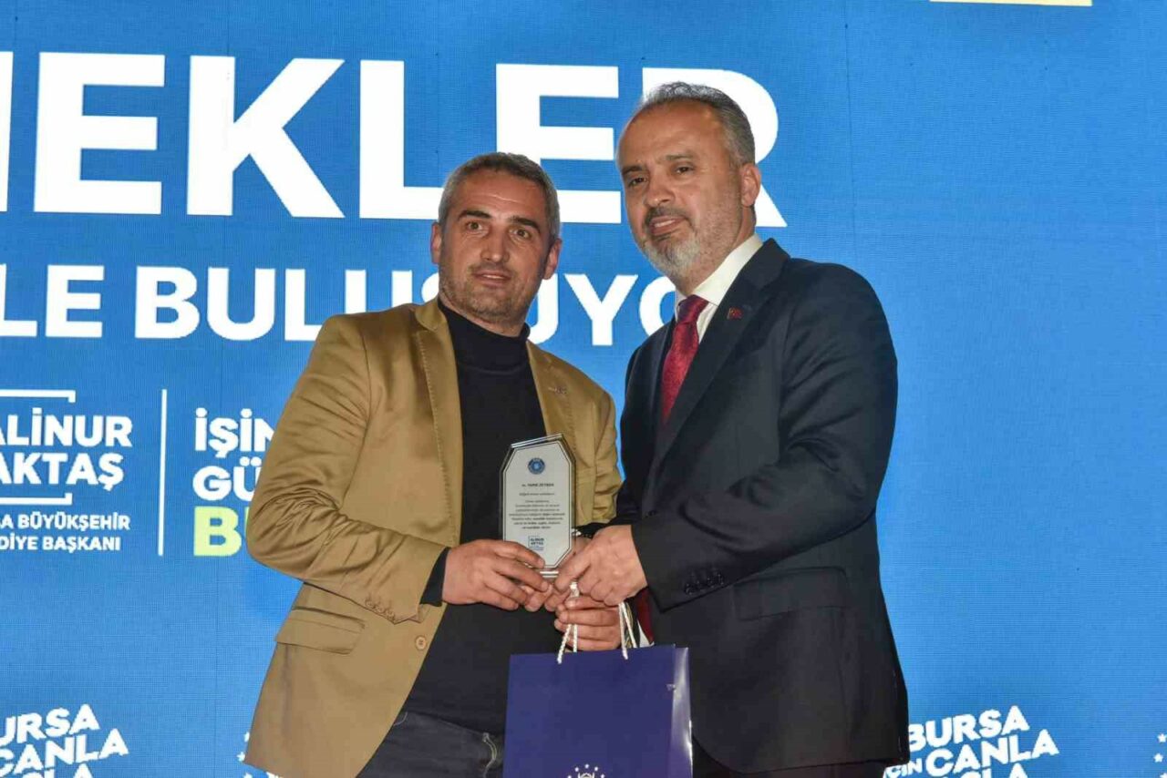 Bursa’ya ve Büyükşehir Belediyesi’ne yıllarca emek veren tüm çalışanlara hizmetlerinden dolayı teşekkür eden Büyükşehir Belediye Başkanı Alinur Aktaş, Bursa’da ortaya çıkan tüm güzel hizmetlerde Büyükşehir Belediyesi ve iştiraklere çalışanların emeği ve katkısı bulunduğunu söyledi. On binlerce üyesi bulunan büyük bir aile olduklarını belirten Başkan Aktaş, “Sel oldu, siz koştunuz. Yangın oldu, siz koştunuz. Sosyal yardıma muhtaç bir aile oldu. yine siz koştunuz. Hep beraber koştuk. Allah hepinizden razı olsun. Büyükşehir Belediyesi’nde bugüne kadar görev almış tüm belediye başkanlarımıza ve yöneticilere de teşekkür ediyorum. Bugün artık o verdiğiniz emeğin, mücadelenin bir sonunu, nihayetini ve kıvancını yaşıyorsunuz. Bursa Büyükşehir Belediyesi çok büyük bir aile. Sekiz iştirakimiz, BUSKİ ve Büyükşehir Belediyesi olmak üzere on tüzel kişilik, 13 bin civarı çalışanımız var. Her birinize teşekkür ediyorum. Bundan sonraki hayatınızda başarılar ve mutluluklar diliyorum. Sizlerle yol arkadaşlığı yapmak, bu şehre hizmet etmek, bu kutlu şehre, bu maneviyatı şehre çok hizmet etmek büyük bir mutluluk. Ailelerinizle, çocuklarınızla beraber sağlıklı, hayırlı, uzun ömürler temenni ediyorum” diye konuştu.