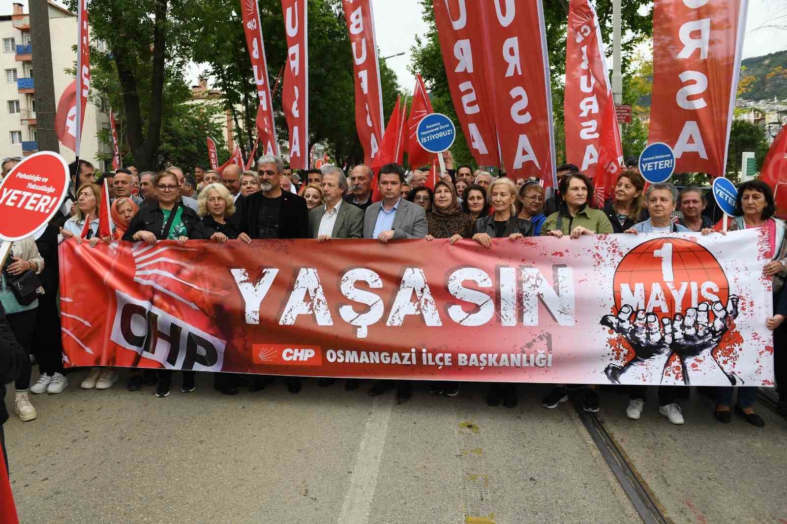 1 Mayıs Emek ve Dayanışma Günü, Osmangazi’de coşkuyla kutlandı. Stadyum Caddesi’ni takiben İpekiş Kavşağı, Darmstadt Caddesi, İlkbahar Caddesi ve Kent Meydanı’na kadar gerçekleştirilen 1 Mayıs yürüyüşüne Bursa Büyükşehir Belediye Başkanı Mustafa Bozbey, Osmangazi Belediye Başkanı Erkan Aydın, Nilüfer Belediye Başkanı Şadi Özdemir, CHP Bursa İl Başkanı Nihat Yeşiltaş, CHP Osmangazi İlçe Başkanı Cengiz Çelikten de katıldı. Sivil Toplum Kuruluşları, oda ve dernekler, siyasi parti temsilcileri ve işçiler, ellerinde Türk bayrakları ve sloganlarla yürüyerek İşçi Bayramını kutladı. Coşkunun hiç azalmadığı yürüyüşte, işçiler taleplerini haykırdı.