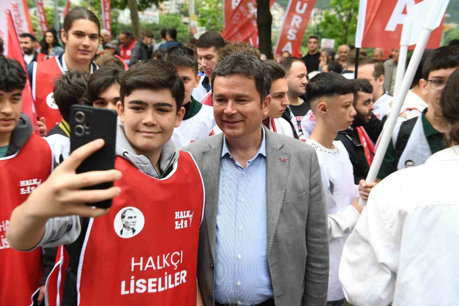 Bursa’daki 1 Mayıs Emek ve Dayanışma Günü yürüyüşüne katılan Osmangazi Belediye Başkanı Erkan Aydın, işçilerin bayramını kutladı.