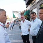 Osmangazi Belediye Başkanı Erkan Aydın, güne Tarihi Çarşı ve Hanlar Bölgesi esnafını ziyaret ederek başladı. Esnafın sıkıntılarını dinleyip, çözüme kavuşturmak için fikir alışverişinde bulunan Başkan Aydın, Tarihi Çarşı ve Hanlar Bölgesi’ni kentin odak noktası haline getirmeyi hedeflediklerini söyledi.