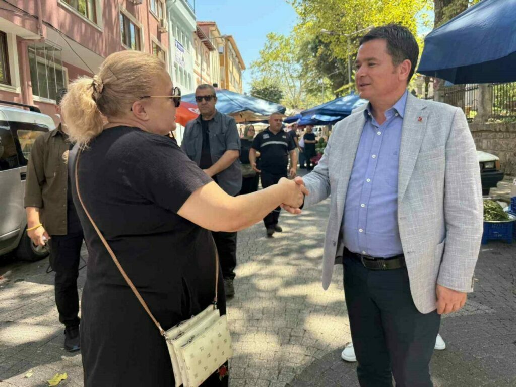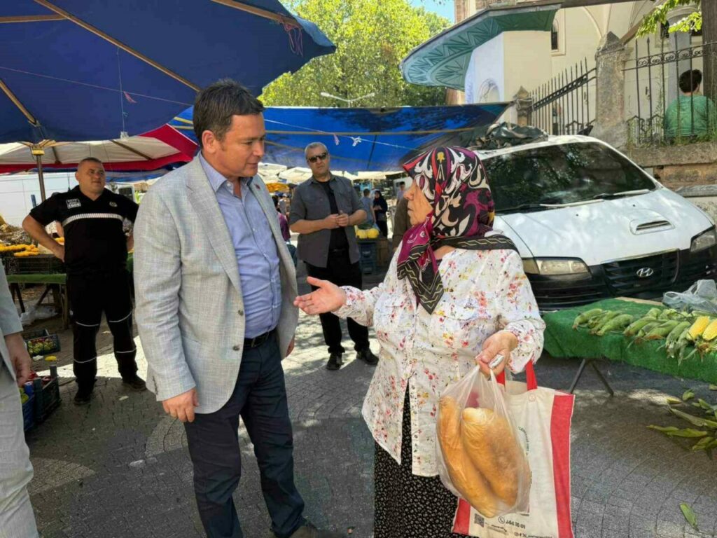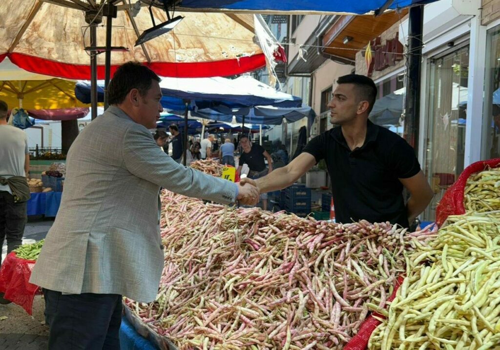 Pazar tezgâhlarını tek tek dolaşan Osmangazi Belediye Başkanı Erkan Aydın, vatandaşlarla da bir araya gelerek sohbet etti.