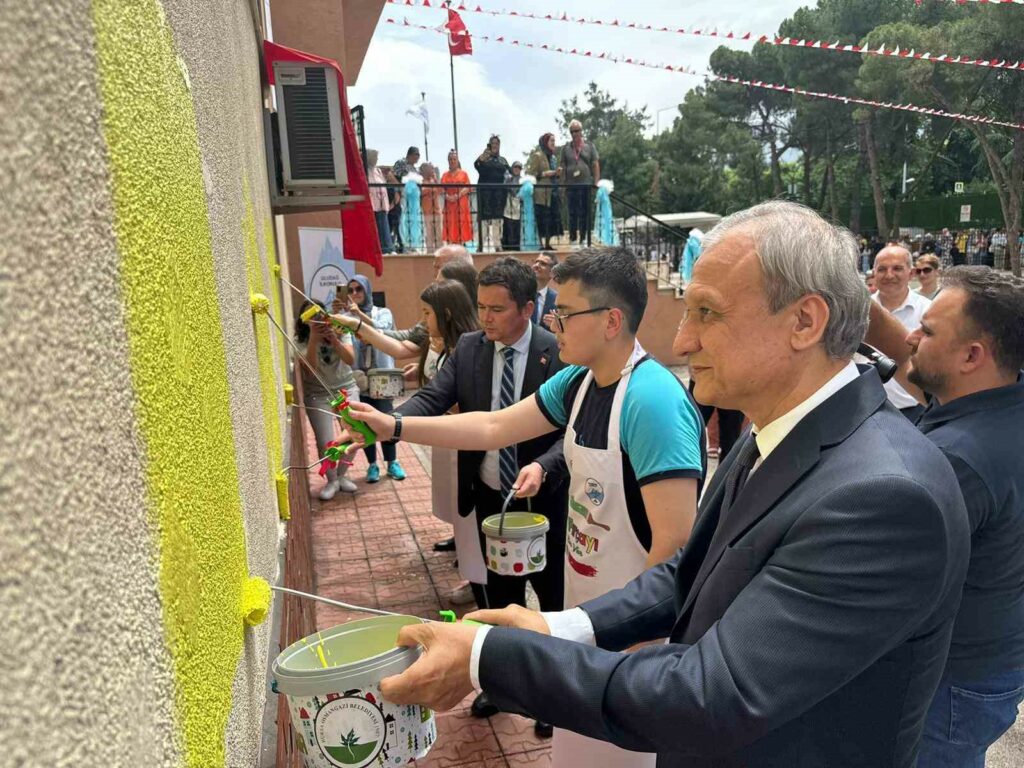 Başkan Aydın, karne töreninin ardından okulun boyanması için öğrenciler tarafından düzenlenen ‘İlk fırçayı sen vur’ etkinliğine de katıldı. Osmangazi Kaymakamı Ali Partal ve Osmangazi İlçe Milli Eğitim Müdürü Hasan Ali Tüzel ile birlikte boyu fırçasını eline alan Başkan Aydın, öğrenciler ile birlikte okulun duvarını boyadı. Renkli görüntülerin ortaya çıktığı etkinlik sonunda öğrenciler Başkan Aydın’a çiçek takdim etti.