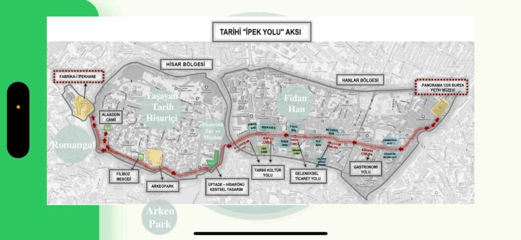 Yeni dönem için hazırladıkları ‘İpek Yolu Aksı’ projesi hakkında da bilgiler veren Başkan Aydın, “Bu proje bizim önümüzdeki dönem için en önm verdiğimiz projemiz. Stratejik planda da en önemli noktaya koyuyoruz. Panorama 1326 Bursa Fetih Müzesi’nden başlayacak olan bu aks, Bursa’nın gastronomi merkezlerinden Kayhan Çarşı üzerinden devam edecek. Kent ekonomisinin kalbinin attığı Uzun Çarşı ve Kapalı Çarşı’yı içine katacak olan tarihi aks, inanç turizmi için önemli bir noktalardan olan Ulucami ile birlikte Bursa surları içerisinde yer alan Üftade Türbesi’nin ardından Osmanlı Devleti’nin kurucuları Osman Gazi ile Orhan Gazi türbelerinin de yer aldığı yer aldığı Hisar bölgesine doğru devam edecek. Bu tarihi aks, Fabrika-i İpekhane Hümayun dediğimiz Muradiye Mahallesi’nde yer alan eski ipek fabrikasında son bulacak” diye konuştu.