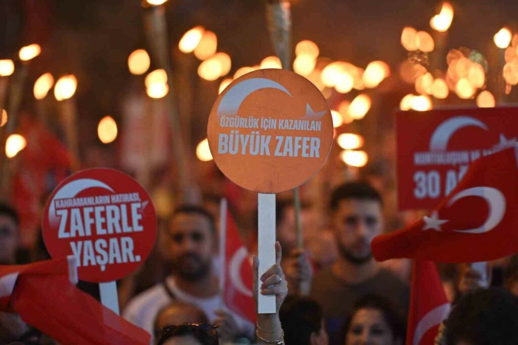 30 Ağustos Zafer Bayramı’nın 102. yıl dönümü, Bursa Büyükşehir Belediyesi tarafından düzenlenen fener alayına binlerce kişinin katılımıyla muhteşem görüntüler eşliğinde kutlandı. Tarihi Belediye Binası önünde bir araya gelerek Atatürk Caddesi’ni baştan sona dolduran Bursalılar, ‘Hepimizin Zaferi’ olan 30 Ağustos heyecanını unutamayacakları bir atmosferde yaşadı. Yürüyüş sonrasında Türk müziğinin güçlü sesi Nilüfer’in konseriyle coşku doruğa çıktı.