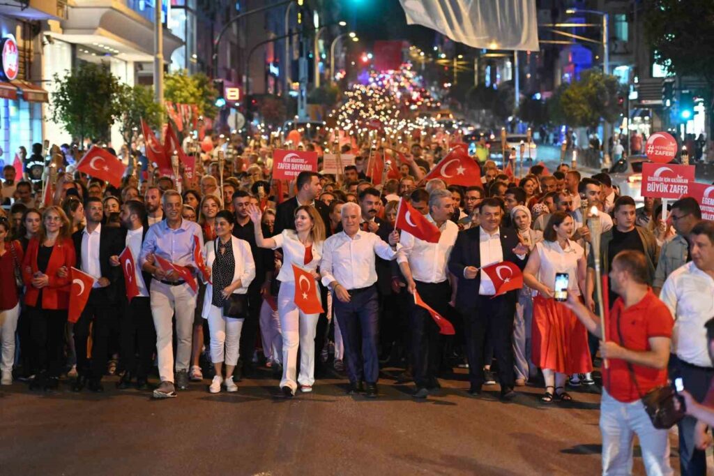 30 Ağustos Zafer Bayramı’nın 102. yıl dönümü, Bursa Büyükşehir Belediyesi tarafından düzenlenen fener alayına binlerce kişinin katılımıyla muhteşem görüntüler eşliğinde kutlandı. Tarihi Belediye Binası önünde bir araya gelerek Atatürk Caddesi’ni baştan sona dolduran Bursalılar, ‘Hepimizin Zaferi’ olan 30 Ağustos heyecanını unutamayacakları bir atmosferde yaşadı. Yürüyüş sonrasında Türk müziğinin güçlü sesi Nilüfer’in konseriyle coşku doruğa çıktı.