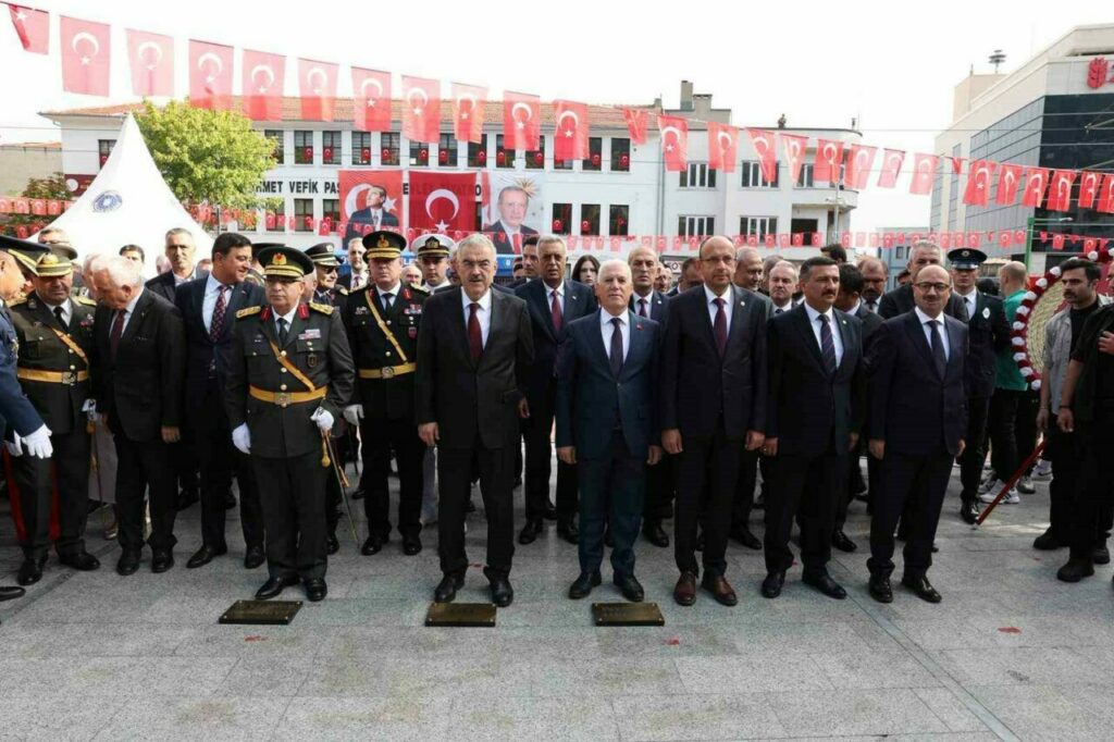 30 Ağustos Zafer Bayramı coşkusu, Bursa’da vatandaşların yoğun ilgisi eşliğinde Valilik, Büyükşehir Belediyesi ve Garnizon Komutanlığı çelenklerinin Atatürk Anıtı’na bırakılmasıyla başladı. Saygı duruşu, İstiklal Marşı’nın okunması ve Türk Bayrağı’nın göndere çekilmesinin ardından Vali Ayyıldız, Başkan Bozbey ve protokol üyeleri, Tarihi Valilik Binası’na geçerek tebrikleri kabul etti. Daha sonra üstü açık araca binen Vali Erol Ayyıldız ve Başkan Mustafa Bozbey, törene katılan vatandaşları selamlayıp, bayramlarını kutladı.