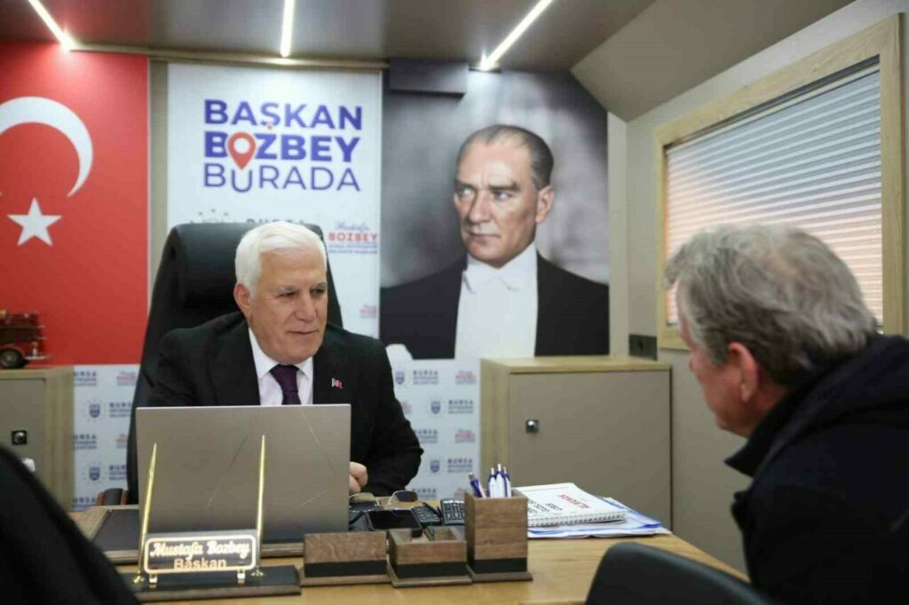 Başkan Mustafa Bozbey, ziyaretlerin ardından Piremir Mahallesi Teleferik Meydanı’nda vatandaşlarla buluştu. Otobüste bulunan makamında vatandaşların talep ve önerilerini dinleyen Başkan Bozbey, çözüm önerilerini ve projelerini de anlattı.