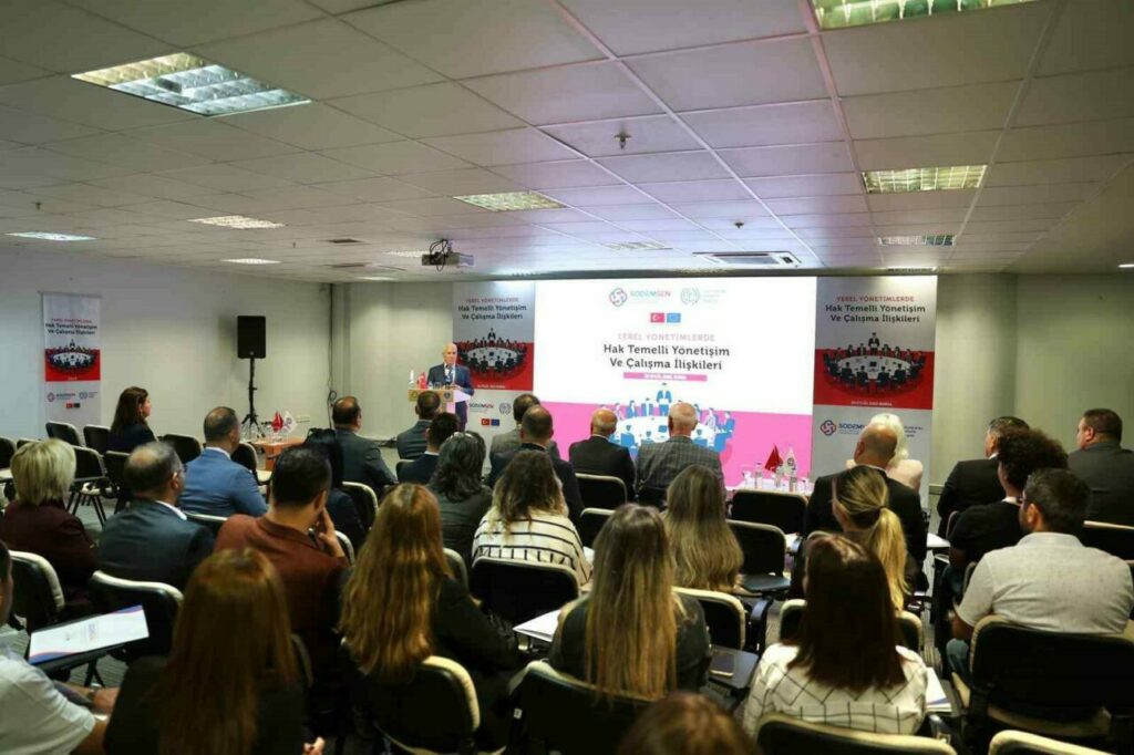 SODEMSEN tarafından düzenlenen ‘Yerel yönetimlerde hak temelli yönetişim ve çalışma ilişkileri’ başlıklı eğitim ve çalıştay, Atatürk Kültür Merkezi Merinos Yerleşkesi’nde yoğun katılımla gerçekleştirildi. Çalışan haklarının korunması ve yerel yönetimlerde sosyal adaletin güçlendirilmesi gibi başlıkların ele alındığı programda konuşan Büyükşehir Belediye Başkanı Mustafa Bozbey, yerel yönetimlerde hak temelli hizmet anlayışının toplumun her kesimine eşit ve adil hizmet götürmek açısından büyük önem taşıdığını belirtti.