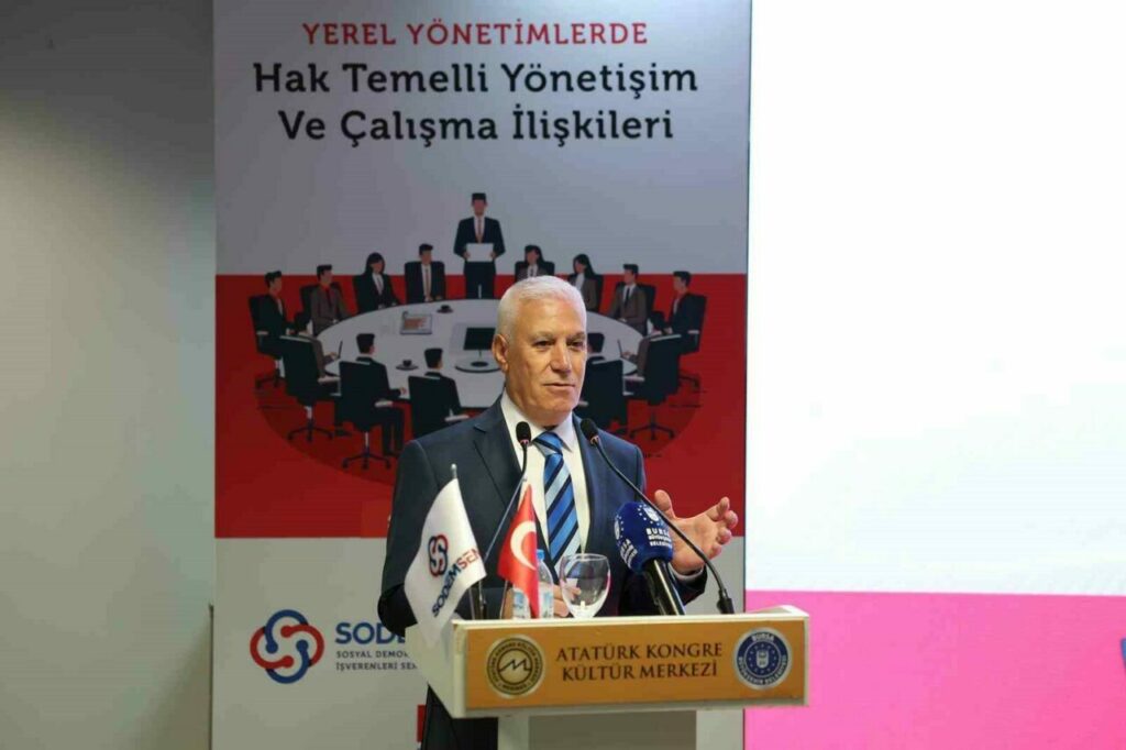 BURSA BÜYÜKŞEHİR BELEDİYE BAŞKANI MUSTAFA BOZBEY, SODEMSEN’İN DÜZENLEDİĞİ ÇALIŞTAYDA, “ÇALIŞANLARIMIZIN ALIN TERİNİN YANINDAYIZ. BUNUN YANINDA AİDİYET DUYGUSUNUN DA EN ÜST SEVİYEDE OLMASINI BEKLİYORUZ” DEDİ.