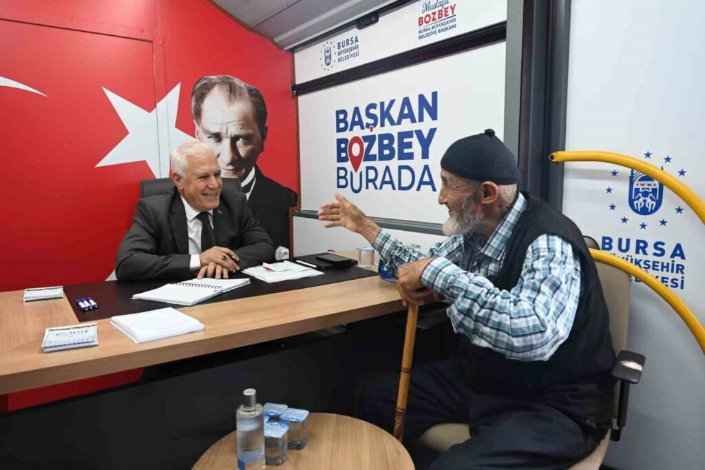 Bursa Büyükşehir Belediye Başkanı Mustafa Bozbey, seçim öncesi verdiği sözlerden biri olan ‘Başkan Bozbey Burada’ projesini başlattı. Başkan Bozbey, daire başkanlarından şube müdürlerine kadar kalabalık bir yönetim kadrosu ile makamını yaklaşık 11 bin Bursalının yaşadığı Büyükorhan’a taşıdı. İlk olarak pazar alanında vatandaşlarla buluşan Başkan Bozbey, ilçe merkezinde de yoğun ilgi ile karşılandı. Büyükorhanlılar, ‘Başkan Bozbey Burada’ otobüsünde talep ve önerilerini birinci ağızdan Başkan Mustafa Bozbey’e iletme fırsatı buldu. Gün boyunca dile getirilen konuları dikkatle dinleyen Başkan Bozbey, sorunların hızlı ve yerinde çözümü için not aldırdı. Ayrıca ilgili bürokratlar da vatandaşlarla yakından ilgilendi.