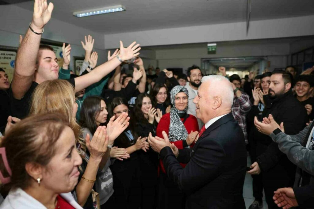 Öğrenciler tarafından ‘Büyük Başkan’ tezahüratlarıyla karşılanan Başkan Mustafa Bozbey, gençlerle fotoğraf çekinip sohbet etti. Mezun olduğu Cumhuriyet Anadolu Lisesi’nde kendi sınıfını da ziyaret eden Başkan Mustafa Bozbey’e, günün anısına Okul Müdürü tarafından 1593 numaralı kayıt belgesi hediye edildi.
