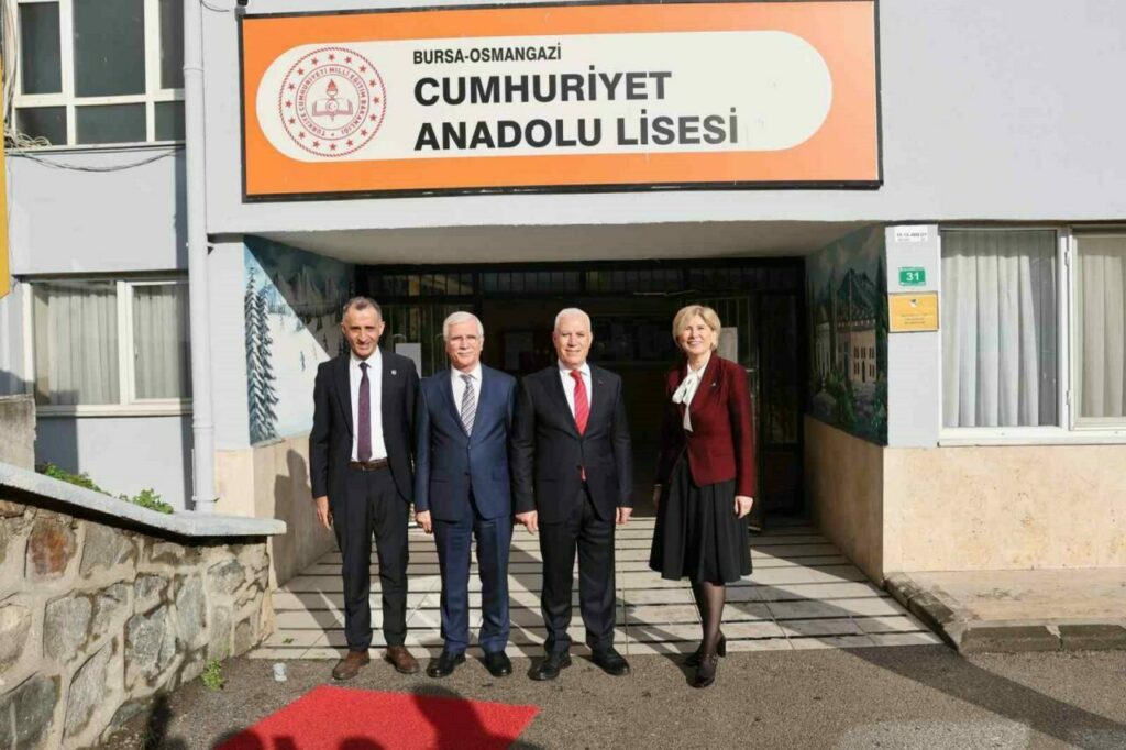BURSA BÜYÜKŞEHİR BELEDİYE BAŞKANI MUSTAFA BOZBEY, YARINLARIN TÜRKİYE’SİNİ YETİŞTİREN ÖĞRETMENLERİ OKULLARINDA ZİYARET EDEREK 24 KASIM ÖĞRETMENLER GÜNLERİNİ KUTLADI.