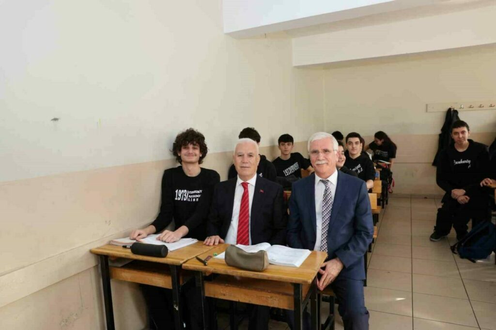 Öğrenciler tarafından ‘Büyük Başkan’ tezahüratlarıyla karşılanan Başkan Mustafa Bozbey, gençlerle fotoğraf çekinip sohbet etti. Mezun olduğu Cumhuriyet Anadolu Lisesi’nde kendi sınıfını da ziyaret eden Başkan Mustafa Bozbey’e, günün anısına Okul Müdürü tarafından 1593 numaralı kayıt belgesi hediye edildi.