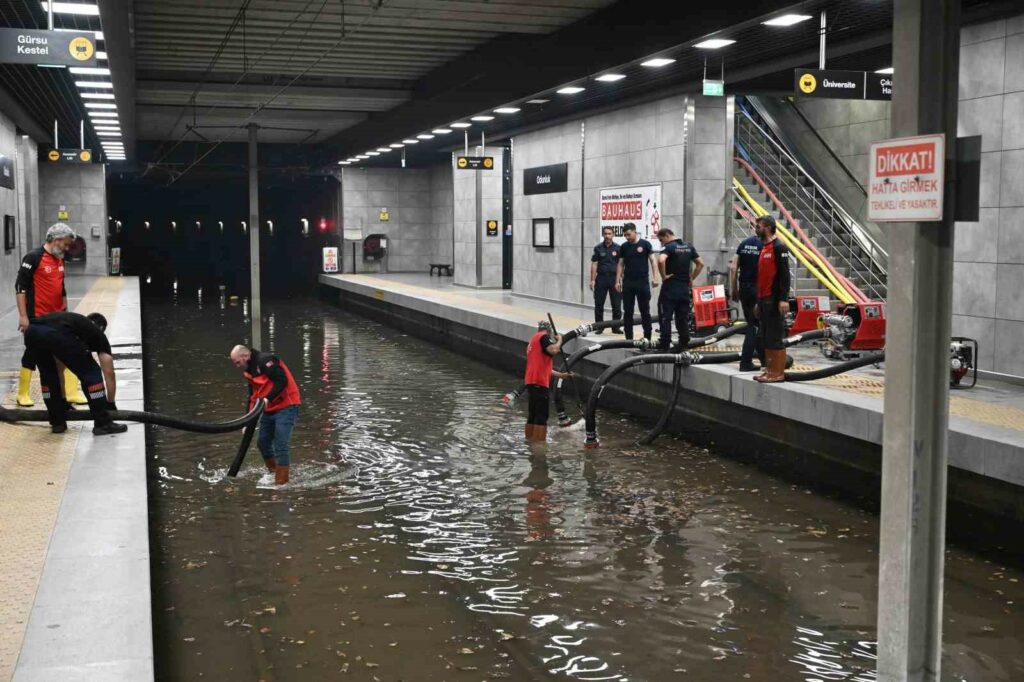 Bursa’da etkili olan sağanak yağışın hayatı olumsuz etkilemesi üzerine şehir dışındaki programlarını iptal ederek hızlıca kente dönen Bursa Büyükşehir Belediye Başkanı Mustafa Bozbey, Odunluk İstasyonu’ndaki su tahliye çalışmalarını yerinde inceledi.