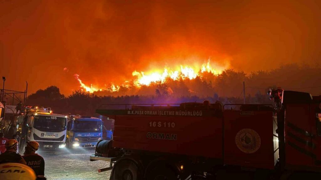 Bursa’nın çok kötü bir gece geçirdiğini söyleyen Başkan Mustafa Bozbey, dün Orhaneli’de başlayan yangının gece saatlerinde kontrol altına alındığını ve 7 köyü etkilediğini belirtti. Ardından saat 17.00 civarında Kestel ilçesi Ağlaşan köyünde yangın ihbarı aldıklarını anlatan Başkan Bozbey, “Ağlaşan’dan başlayan yangın, çevre mahallelerimizi ve en fazla Karahıdır’ı tehdit eder hale geldi. Ardından İğdir’e ulaştı. Bu bölgedeki birçok orman alanının tamamen yanmasına neden oldu. Aynı zamanda köy ve mahallelerimize tehdit eder duruma ulaştı. Allah’tan bir can kaybımız yok. Çalışma arkadaşlarımızdan biri, ayağının kırılması sebebiyle kalp krizi geçirdi. Şuan hastanede ve yoğun bakımda. İki orman memuru da yangın esnasında karbondioksit zehirlenmesi yaşadı ve hemen tedavi altına alındı. Yangın söndürmek için yoğun çaba harcayan insanlara yiyecek ve içecek yetiştirmek için mücadele eden her güzel insana yürekten teşekkür ediyorum. Büyük geçmiş olsun” dedi.