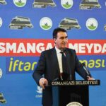 İftar yemeğinin ardından bir konuşma yapan Osmangazi Belediye Başkanı Mustafa Dündar, “Osmangazi’de vatandaşlarımız ile güzel bir Ramazan geçiriyoruz. Osmangazi Belediyemizin 14 yıldır üzerinde çalıştığı önemli bir kentsel dönüşüm projesi olan Osmangazi Meydanı’nda düzenlediğimiz iftar programları ile her akşam farklı kesimlerden vatandaşlarımız ile aynı sofrada buluşuyoruz. Bugün de şehitlerimizin emaneti olan sizlerle bir arada olmaktan dolayı çok mutluyuz. Vatandaşlarımızla iftar yaparak hem Ramazan ayının birlik, beraberlik ve dayanışma ruhunu birlikte yaşıyoruz hem de vatandaşlarımızın yakında açılışını yapacağımız bu devasa meydan hakkındaki meraklarını gidermiş oluyoruz. Bu merakları giderme adına Ramazan öncesinde gençlere yönelik konserler yaptık ve 250 bin gencimizi 37 bin metrekare büyüklüğündeki bu meydanda ağırladık. İki etap halinde çalıştığımız Osmangazi Meydanı projesinin birinci etabını önümüzdeki günlerde hizmete açacağız. İnşallah seçimlerde halkımızın bizlere vereceği destek ile de ikinci etaptaki çalışmalarımız hız kazanacak. Yapılaşmanın yoğun olduğu bir şehirde yaşadığımız için bu tür meydanlara vatandaşlarımız ihtiyaç duyuyordu. Osmangazi Meydanı, Bursa’ya nefes aldıran bir eser olarak ortaya çıktı” dedi.