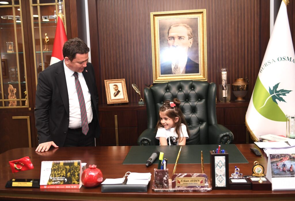 Başkan Erkan Aydın koltuğunu çocuklara devretti Osmangazi Belediyesi Başkanı Erkan Aydın, 23 Nisan Ulusal Egemenlik ve Çocuk Bayramı kutlamaları kapsamında minik öğrencileri makamında ağırladı ve koltuğunu devretti. Giriş: 22-04-2025 14:54Güncelleme: 22-04-2025 14:55 BursaFoto Galeri