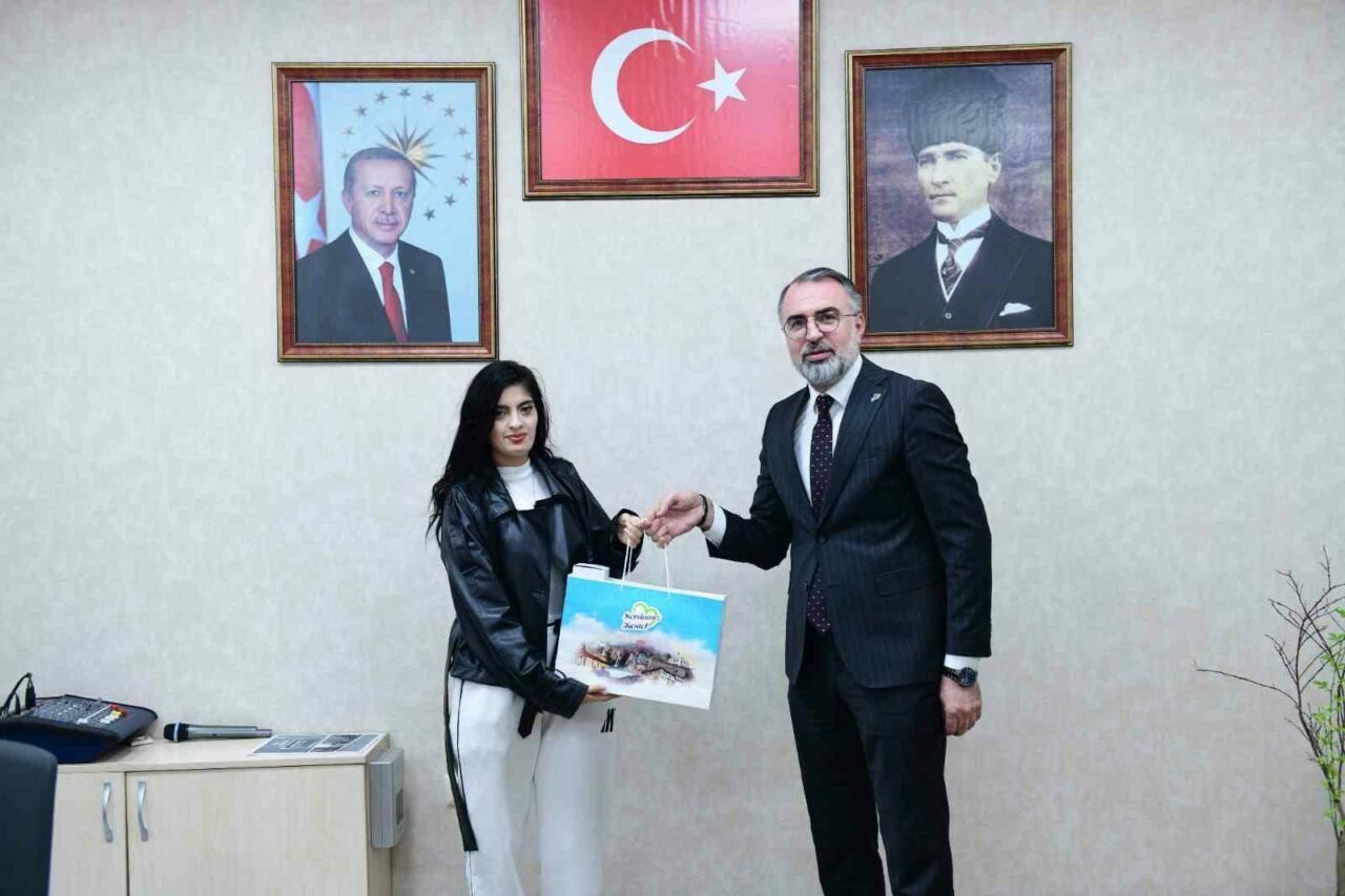Kestel Belediye Başkanı Ferhat Erol’a eğitime katkılarından dolayı teşekkürlerini ileten İdeal Aydın,